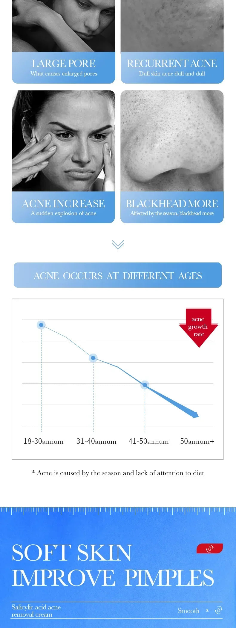 Salicylic Acid Face Cream Acne Creams Mark Repair Firming Moisturizing Blackhead Remover skincare Facial Cream