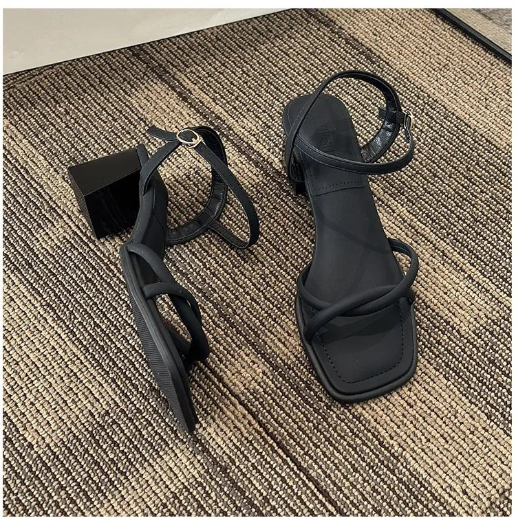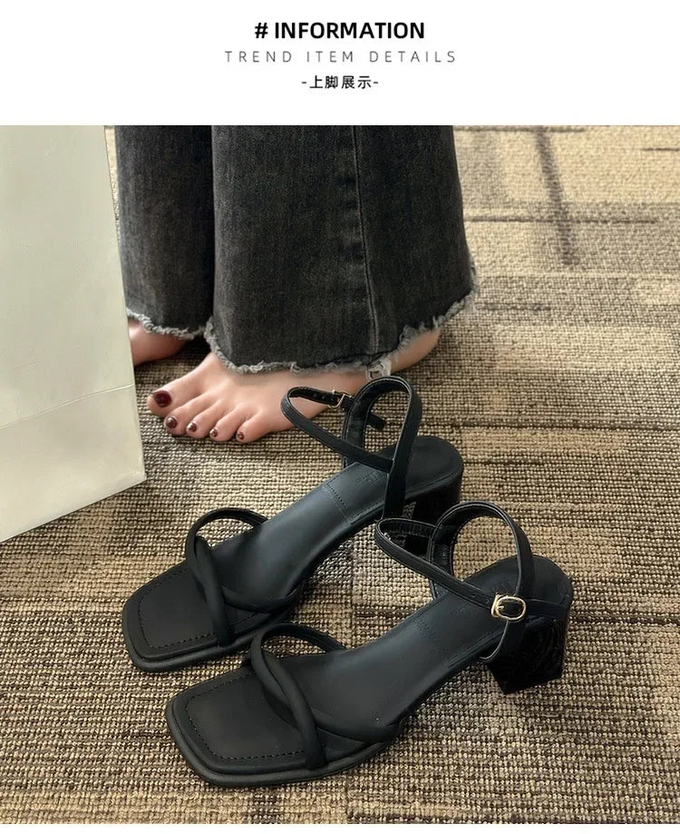 Sandals, 2025 Summer New Fashion Gentle Retro Chunky Non-slip Sandals, A Line with 5cm High Heels Summer Beach Sandals