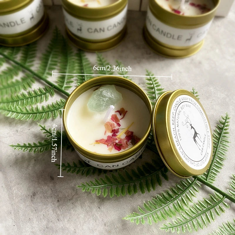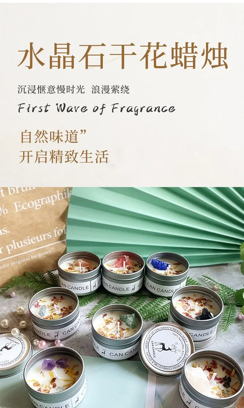 Scented Candle Crystal Stone Dry Flower Silver Tin Candle Hotel Wedding Ceremony Candle