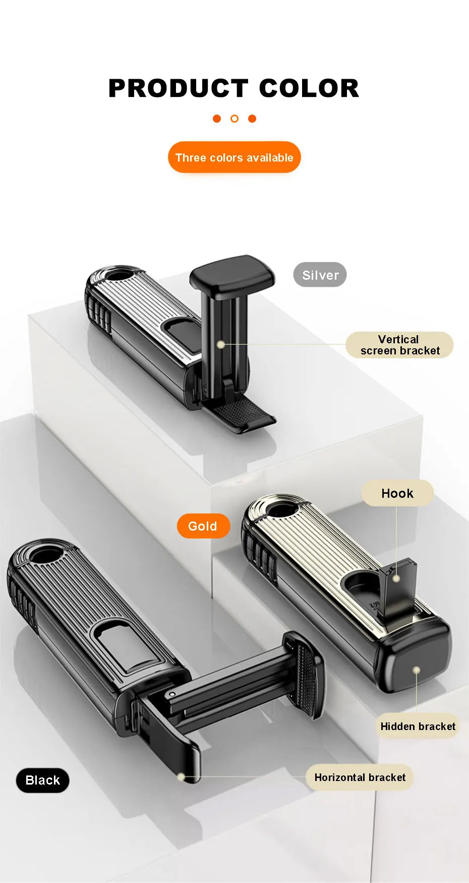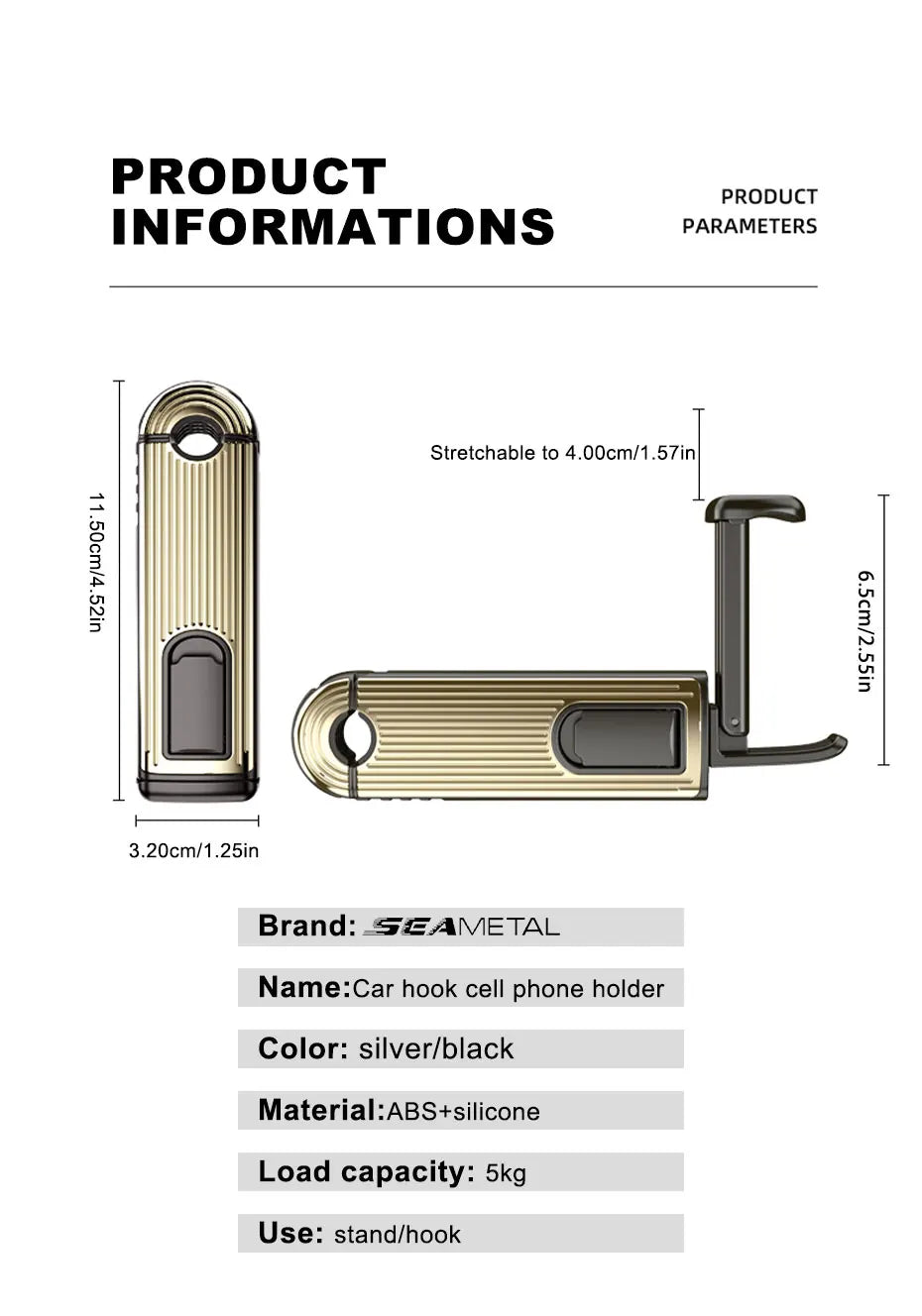 SEAMETAL 2 in 1 Car Seat Back Hook with Phone Holder Stable Headrest Hanging Hook Anti Slip Silicone Pad Hidden Rear Row Hanger