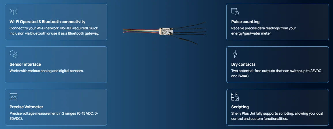 Shelly Plus Uni Smart Wi-Fi operat module Designed systems small device offers advanced automation insightful monitoring