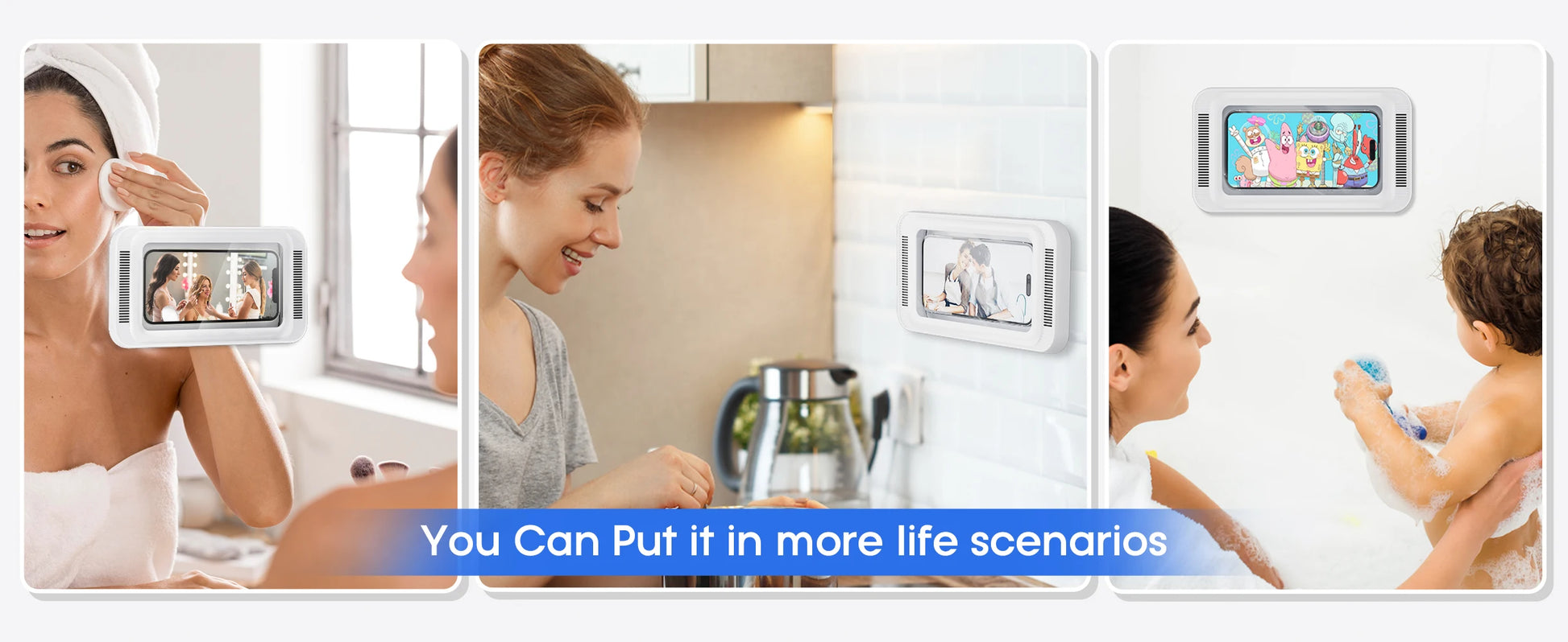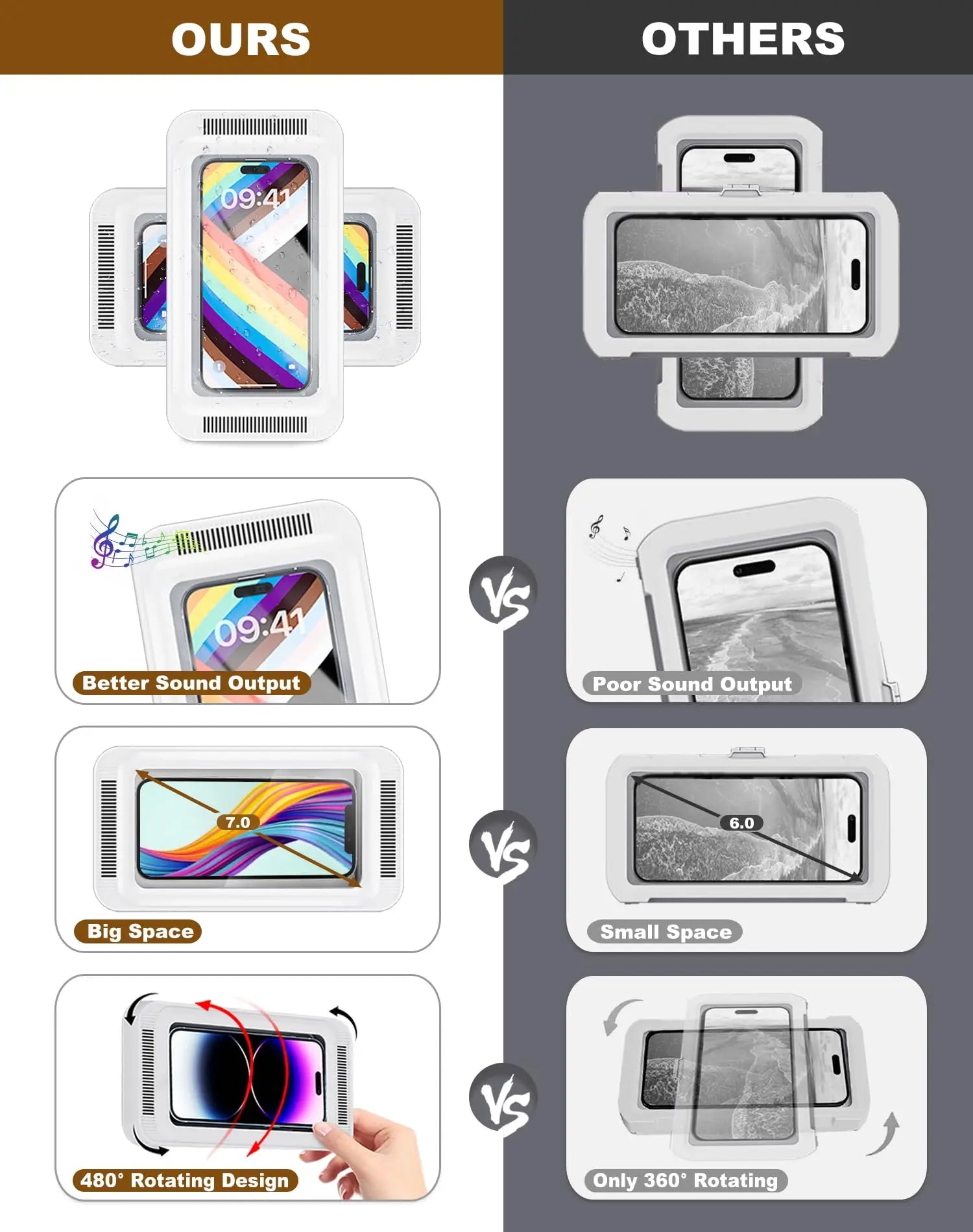 Shower Phone Holder with Speaker 480 Rotation, Wall Phone Mount for Shower Waterproof Anti Fog Shower Case for 4-7" Phones