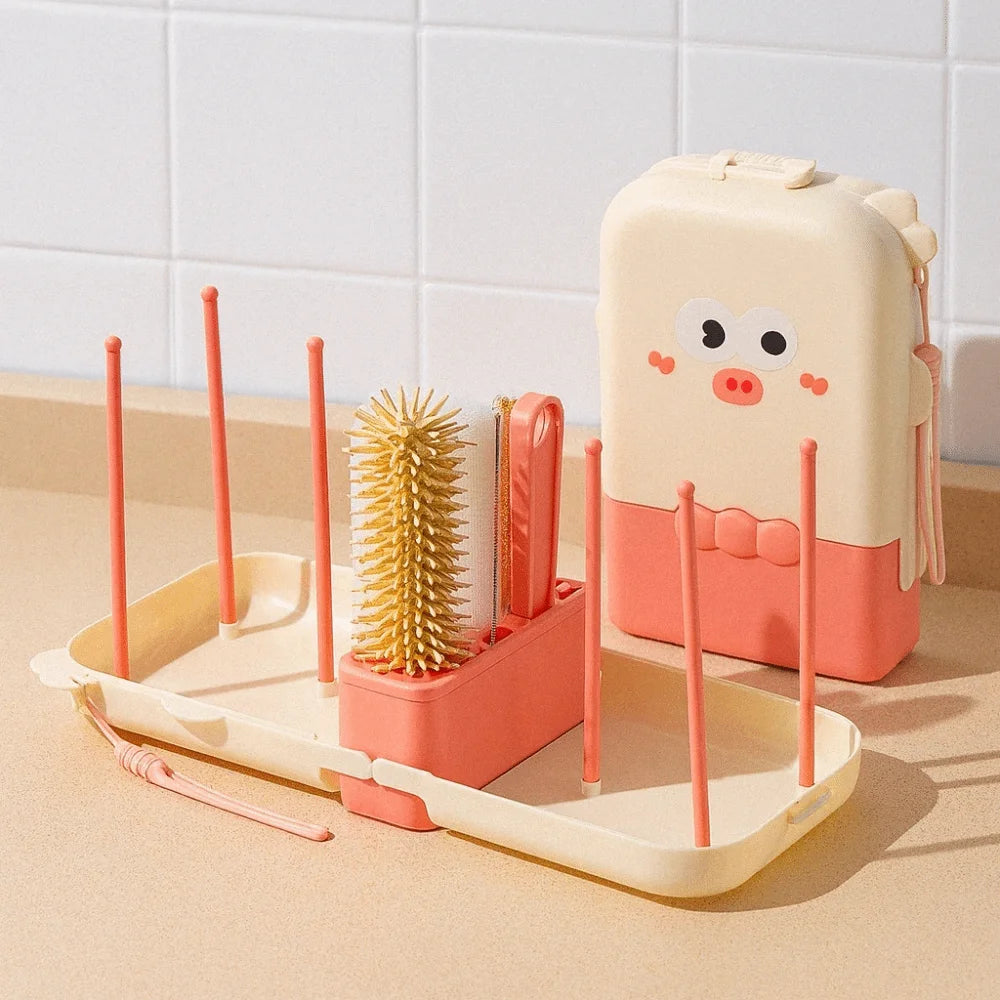 Silicone Baby Bottle Brush Set Soft Bristles Flexible Cup Cleaning Brushes with Storage Box Feeding Bottle Cleaners Home Use