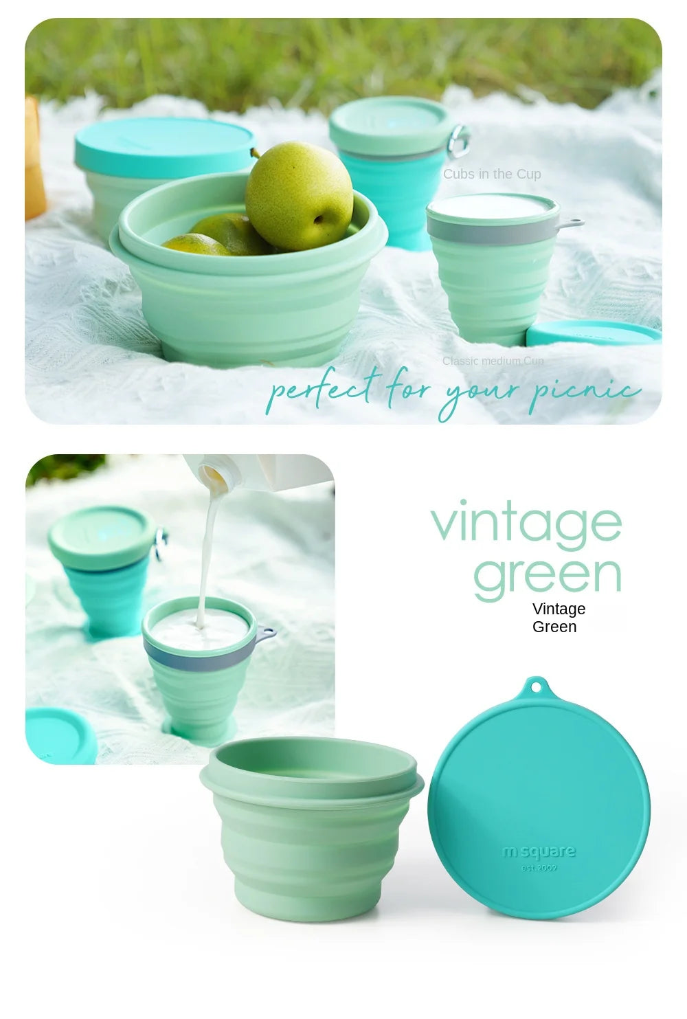 Silicone Bowl Foldable with Lid Camping Baby Travel Portable Round Large Food Container Heat Resistant Salad Bowl