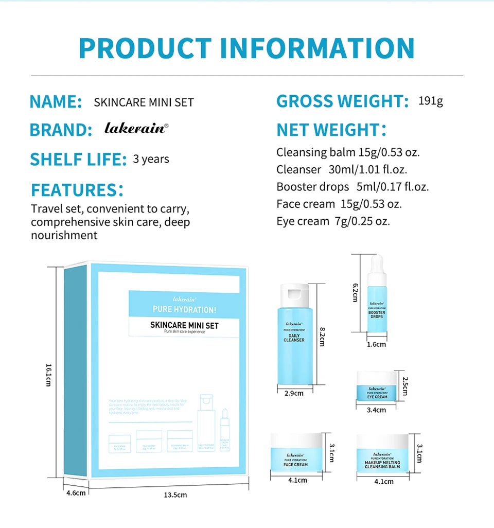 Skincare Mini Kit Cleanser Makeup Remover Moisturiser & Eye Cream For Hydrating Skin Airplane-Friendly Sizes Skincare Set