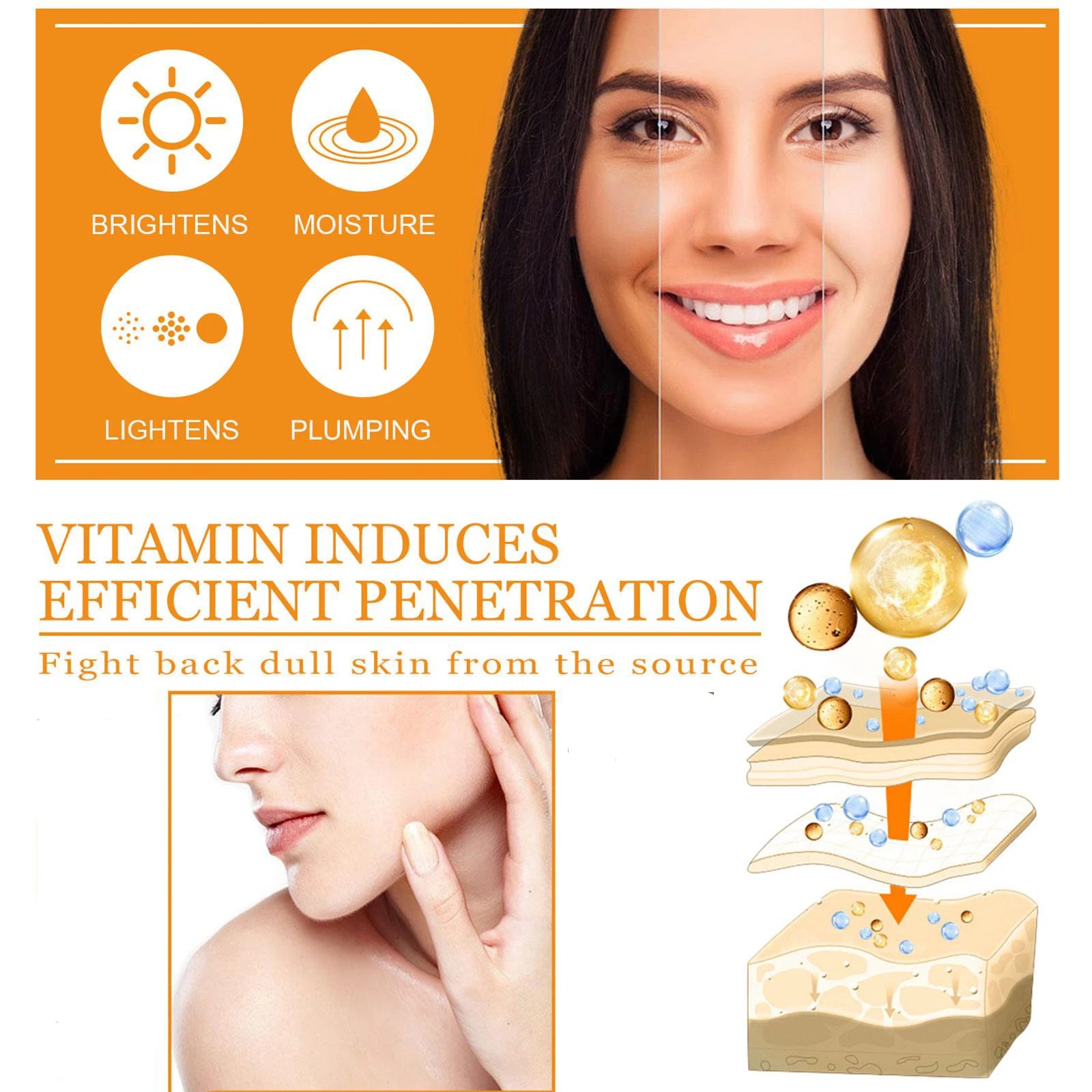 Skincare Products Vitamin C Facial Serum Brighten Skin Lighten Spots Hyaluronic Acid Face Essence Skin Care Products 30ml