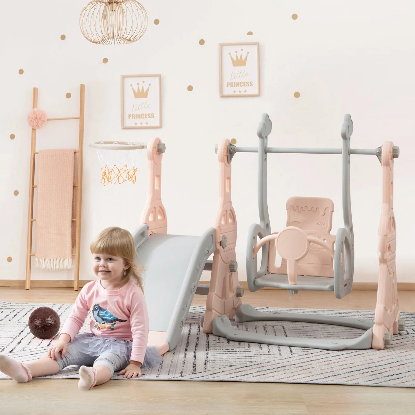 Slide for Children, 4 In 1 Children's Slide Swing with Basketball st, Climbing ladder, Swing Slide Garden Slide for Indoor Outdo