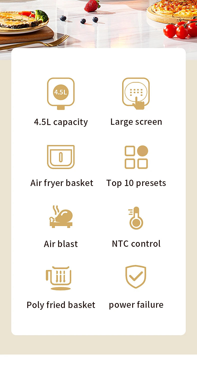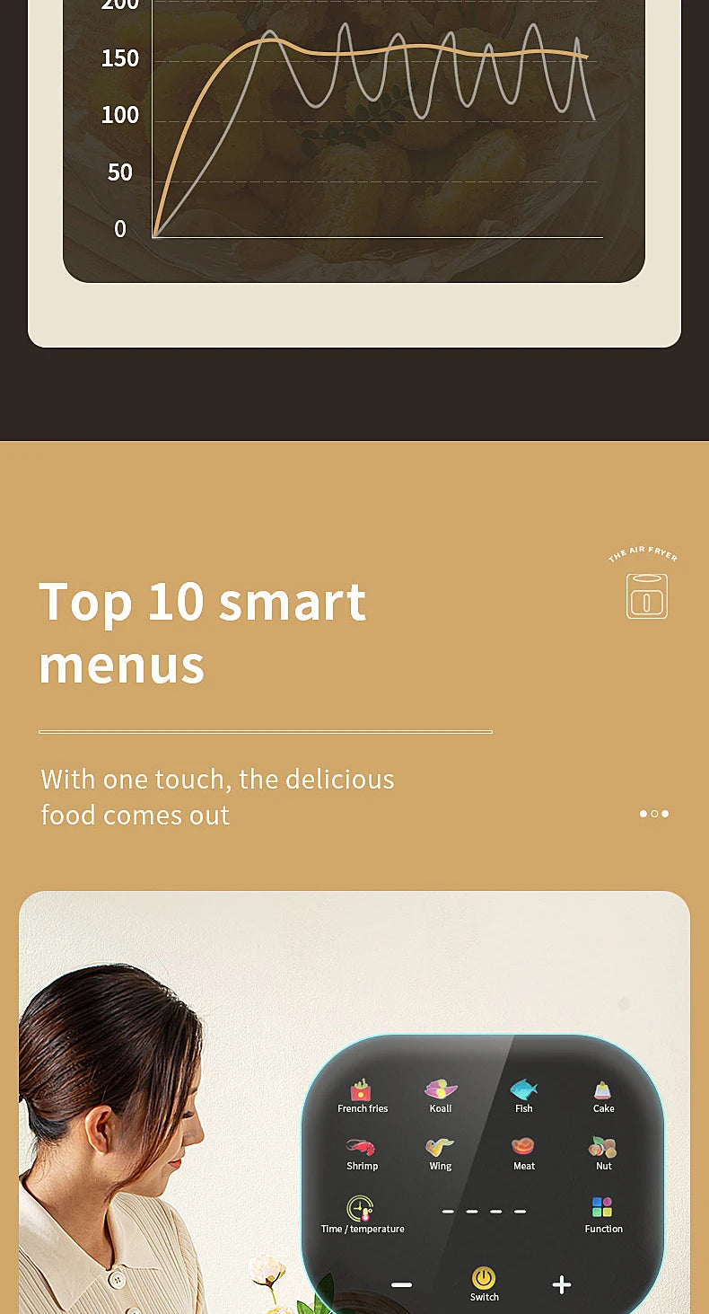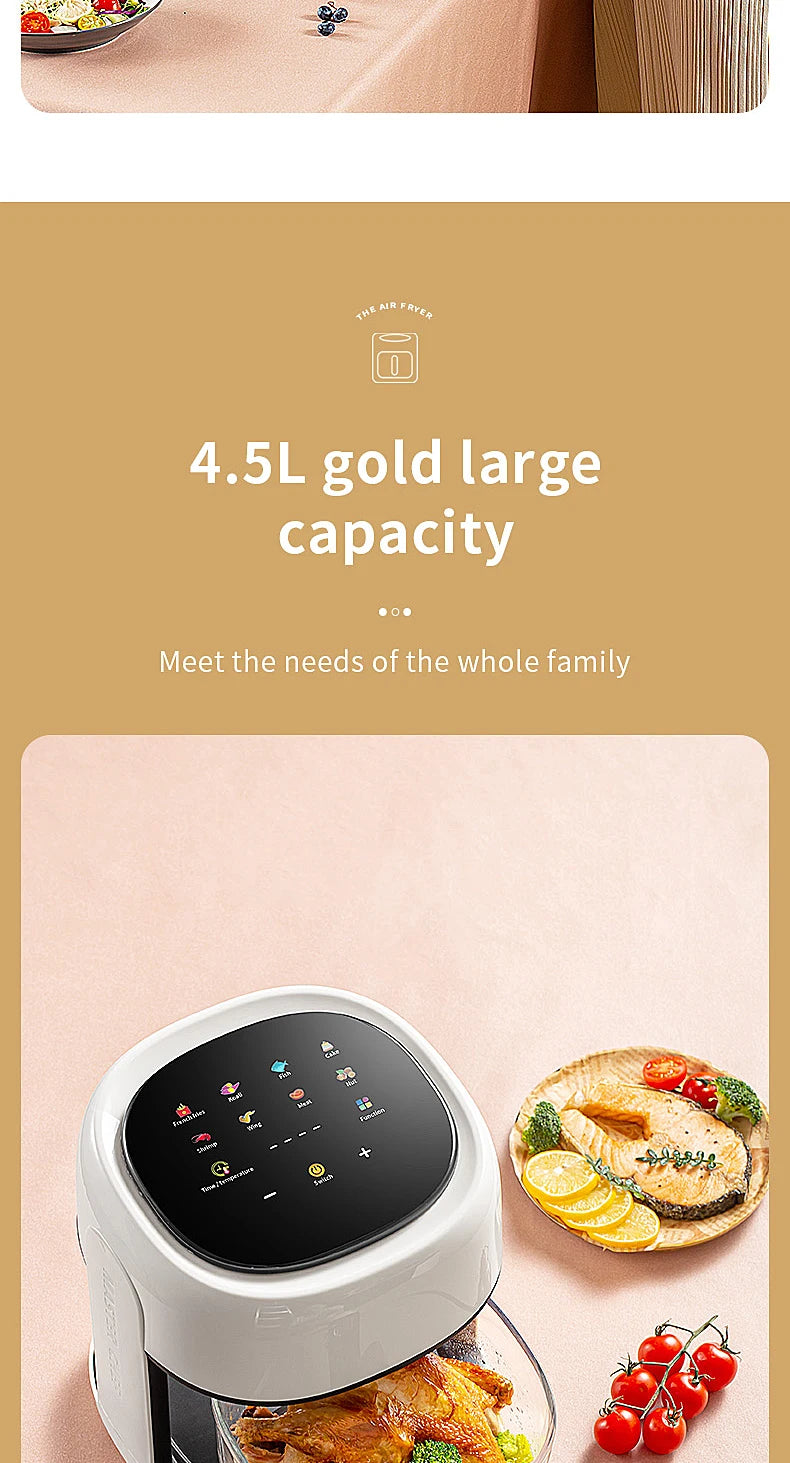 Smart Electric Air Fryer Large Capacity Convection Oven Deep Fryer Without Oil Kitchen 360°Baking Viewable Window Home Applianc
