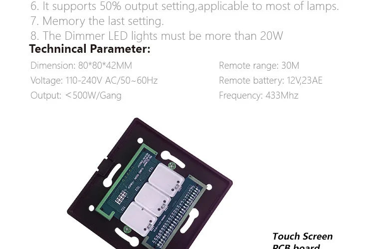 Smart Home EU Dimmer Switch White Crystal Glass Wireless Remote Control Light Dimmer Switch 500W,110-240V RF Switch 220V