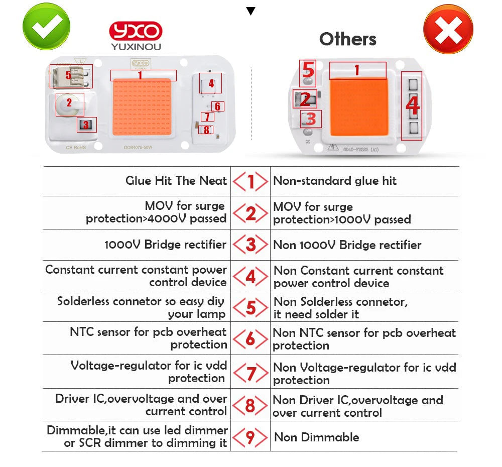 Smart IC LED COB Bulb Chip 20W 30W 50W 230V Input IP65 Waterproof for DIY Street Flood Light Projects Cold/Warm White Options