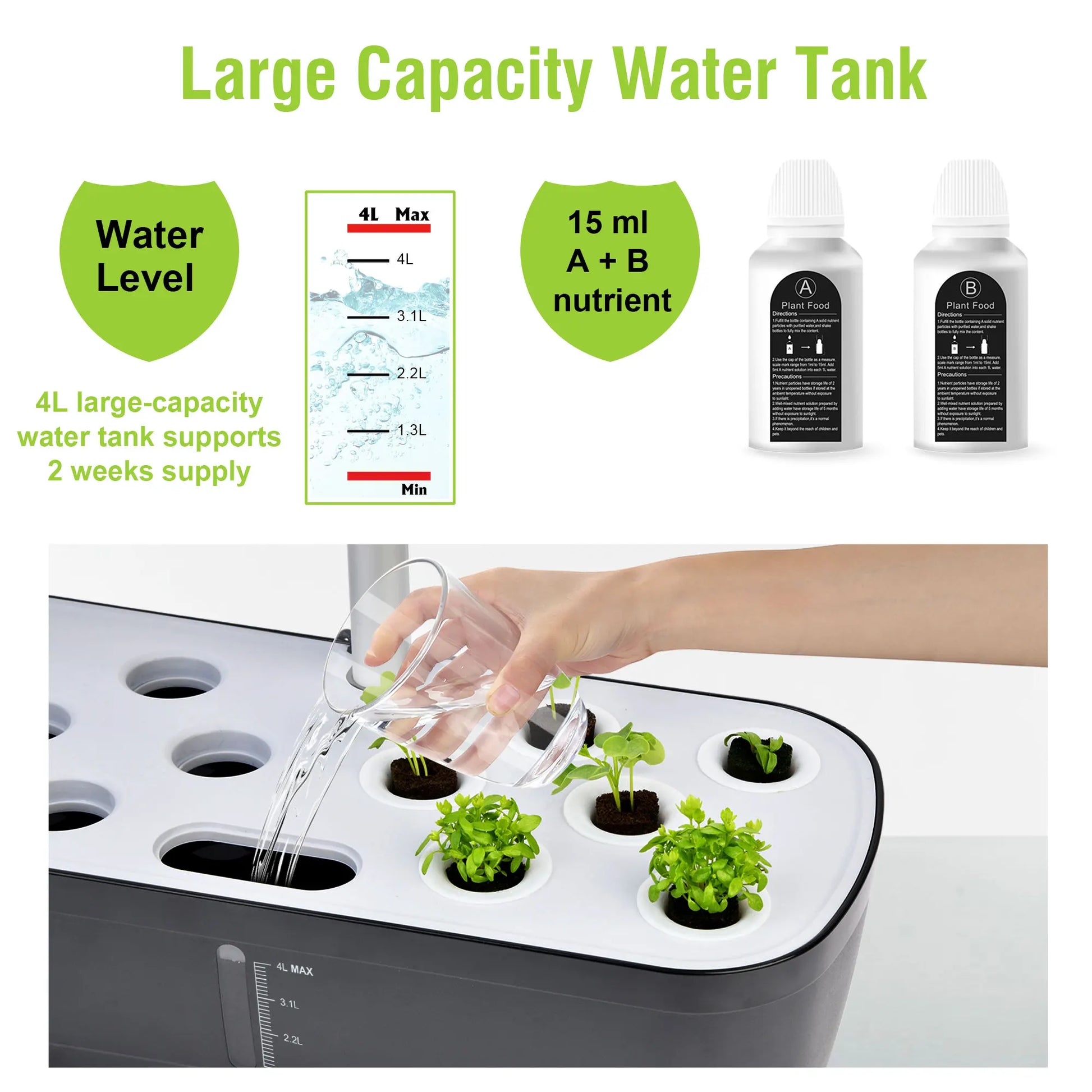 Smart Indoor Hydroponic Garden With 12 Pods, 24W LED Grow Light, Automatic Watering System For Herbs Vegetables Flower Growing