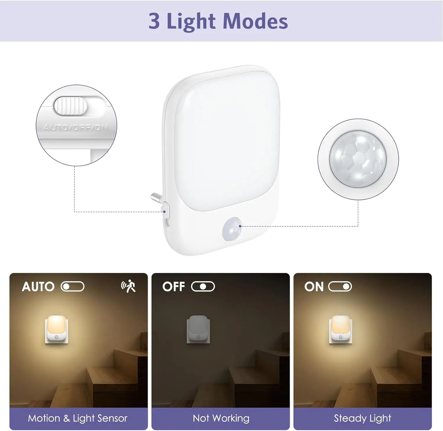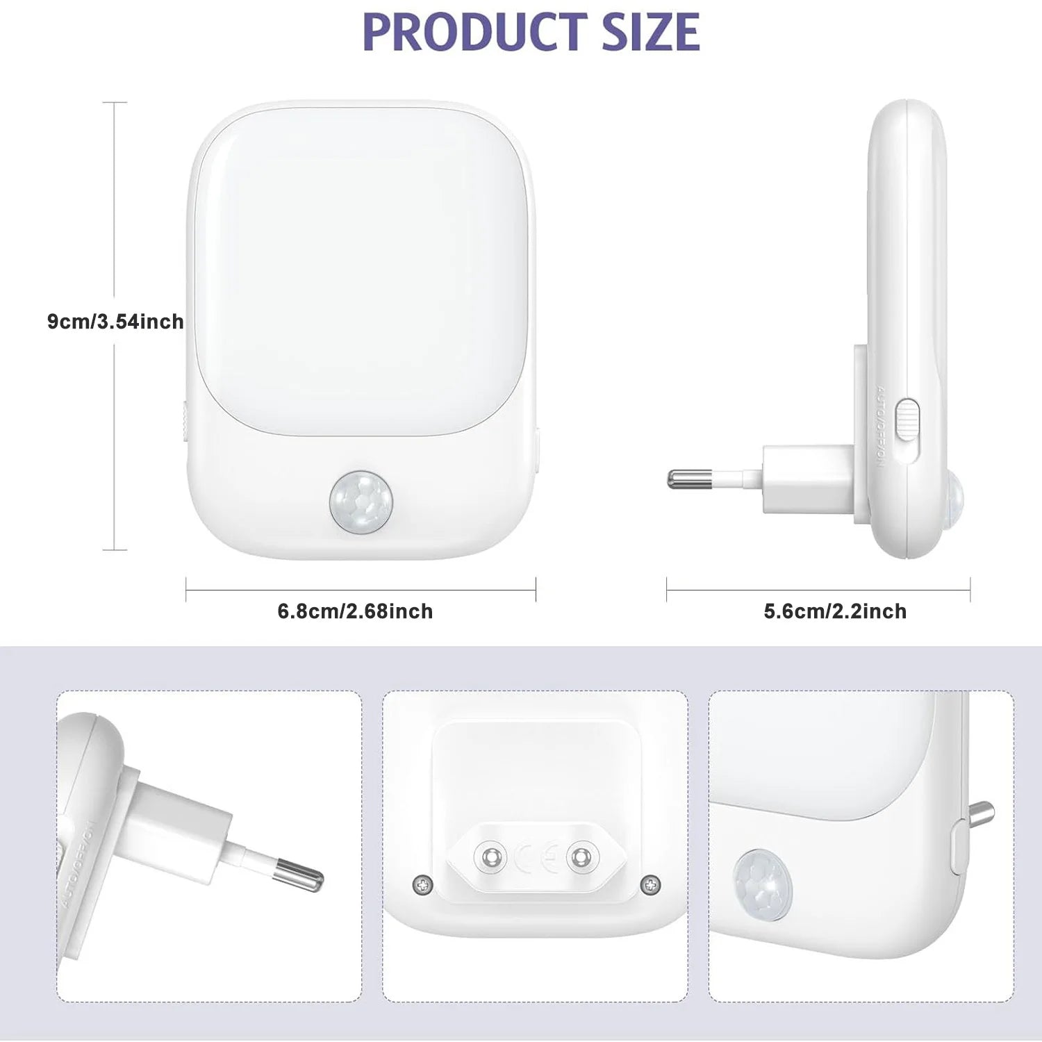 Smart LED Night Light with Sensor, Adjustable Brightness, Suitable for Bedroom, Bathroom, Corridor, Staircase, Kitchen - Plug-in