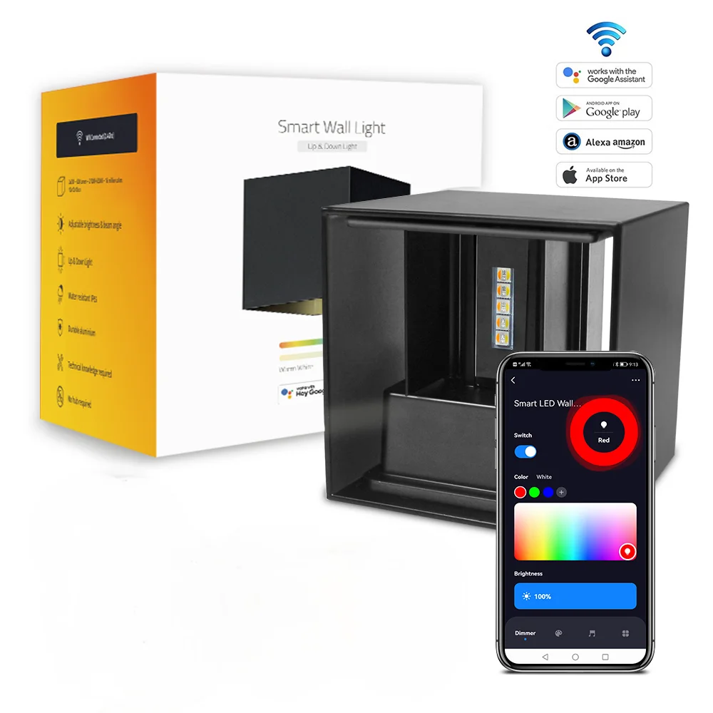 Smart Outdoor Lights Color Changing RGB+ 2700K-6500K Square Aluminum Waterproof Rustproof App Control Up and Down Lights