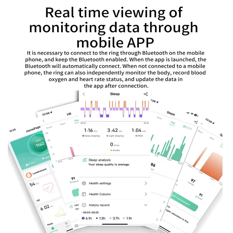 Smart Ring For Women Men Health Tracker Heart Rate Blood Oxygen Monitor Multi Sports Sleep Fitness 5ATM Waterproof Smartring