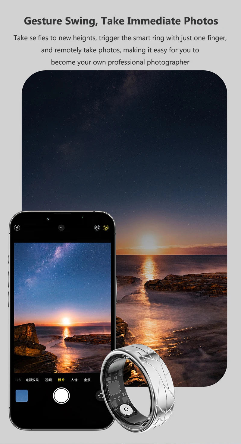 Smart Ring Women Health Tracker Heart Rate Blood Oxygen Photo Control Brush Tiktok Waterproof Multi-sport Modes Men Fitness Ring