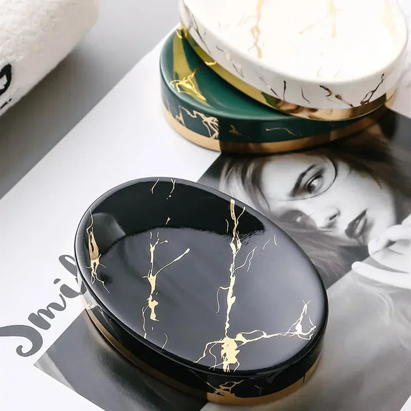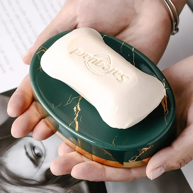 Soap Dish, Marble Look Bar Soap Holder Soap Sponge Tray Soap Case Box Saver for Bathroom Shower Kitchen Sink- Marble Look