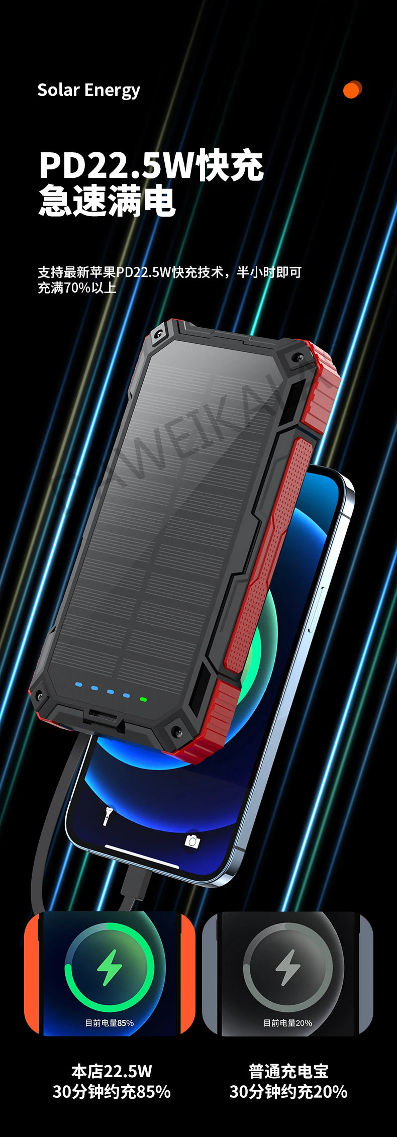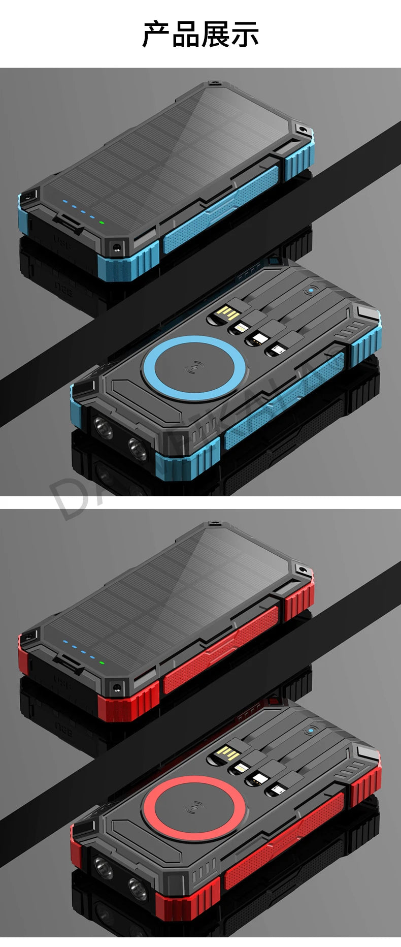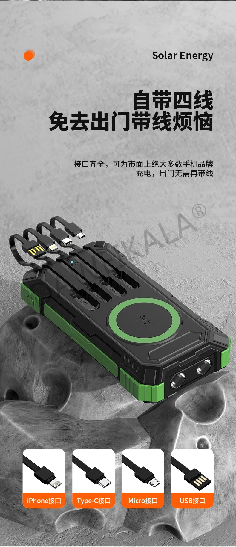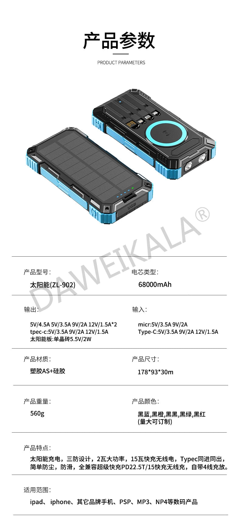 Solar panels Power bank Wireless charging solar phone charger 68000mAh with outdoor lighting Phone Charger 15W Wireless charging