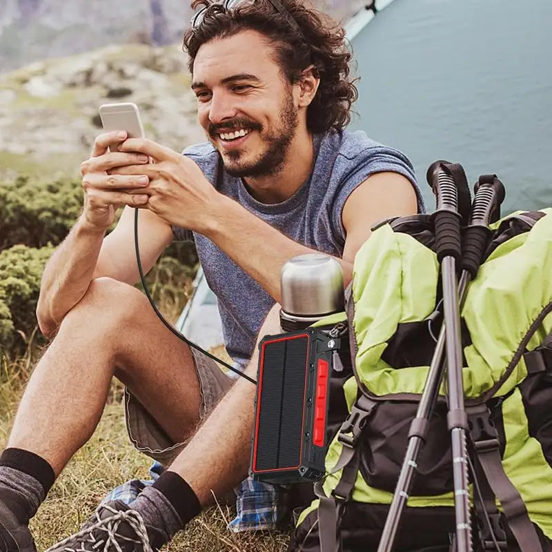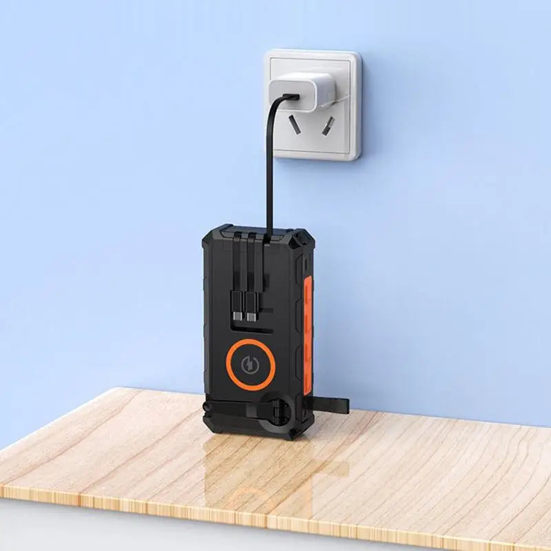 Solar Power Bank Hand-Cranked Battery Bank Charger With LED Light Foldable Powerbank Built-In SOS Alarm Function And Compass For