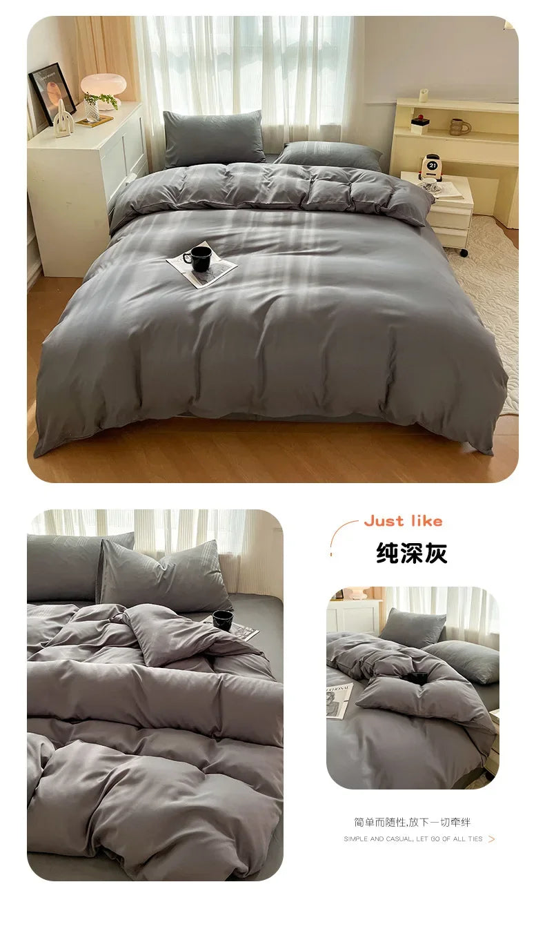 Solid Color Four Piece Bedding Set for Children and Adults Double Bed Large Four Piece Duvet Cover Bed Sheet Pillow Cover