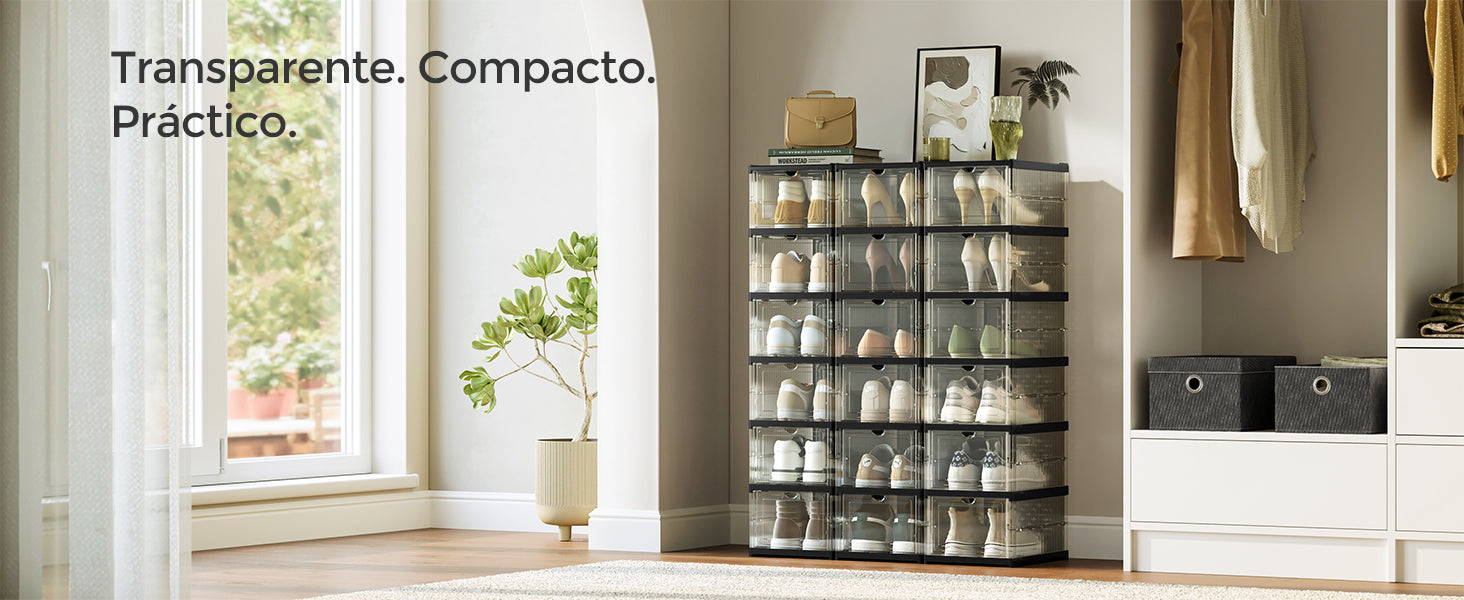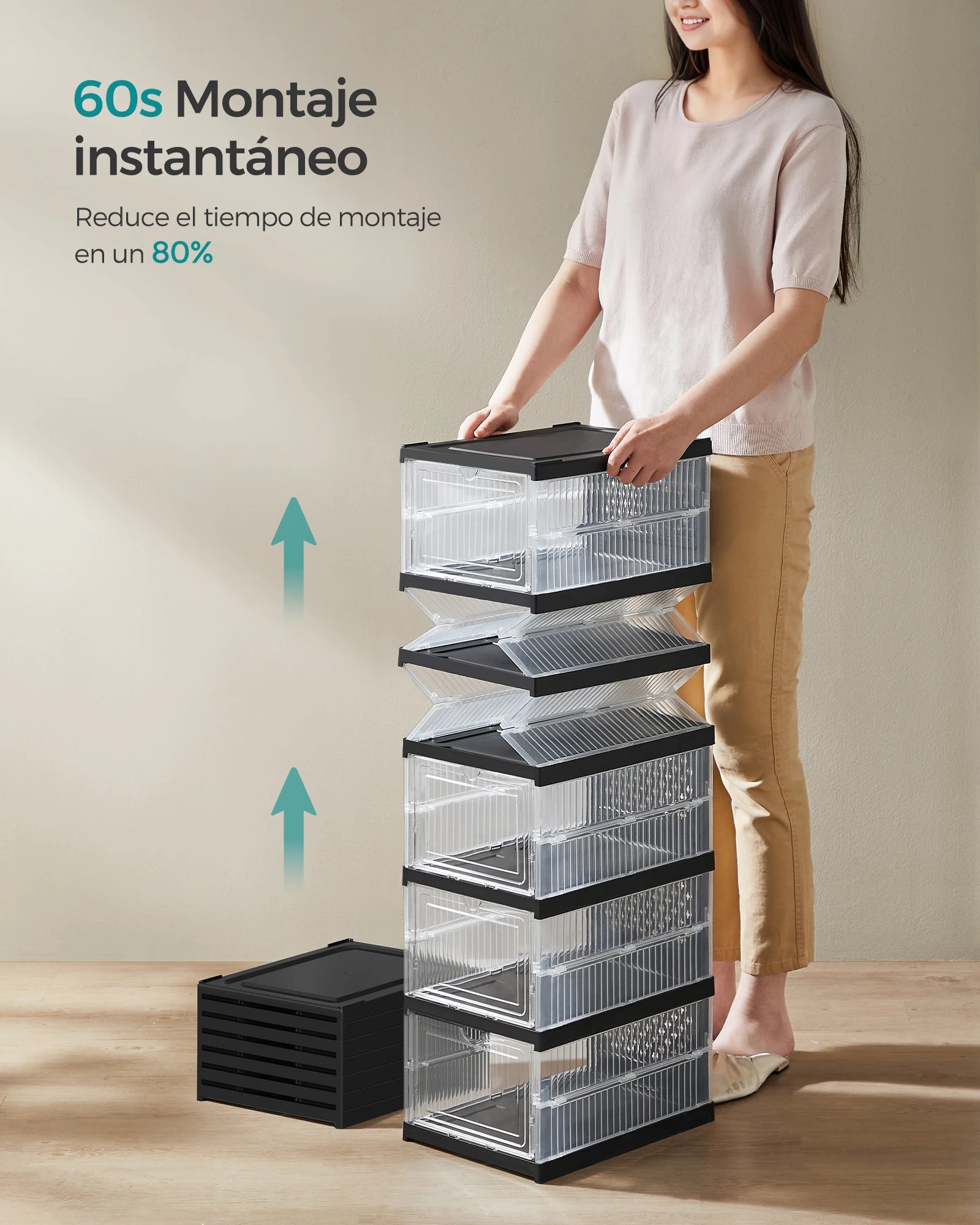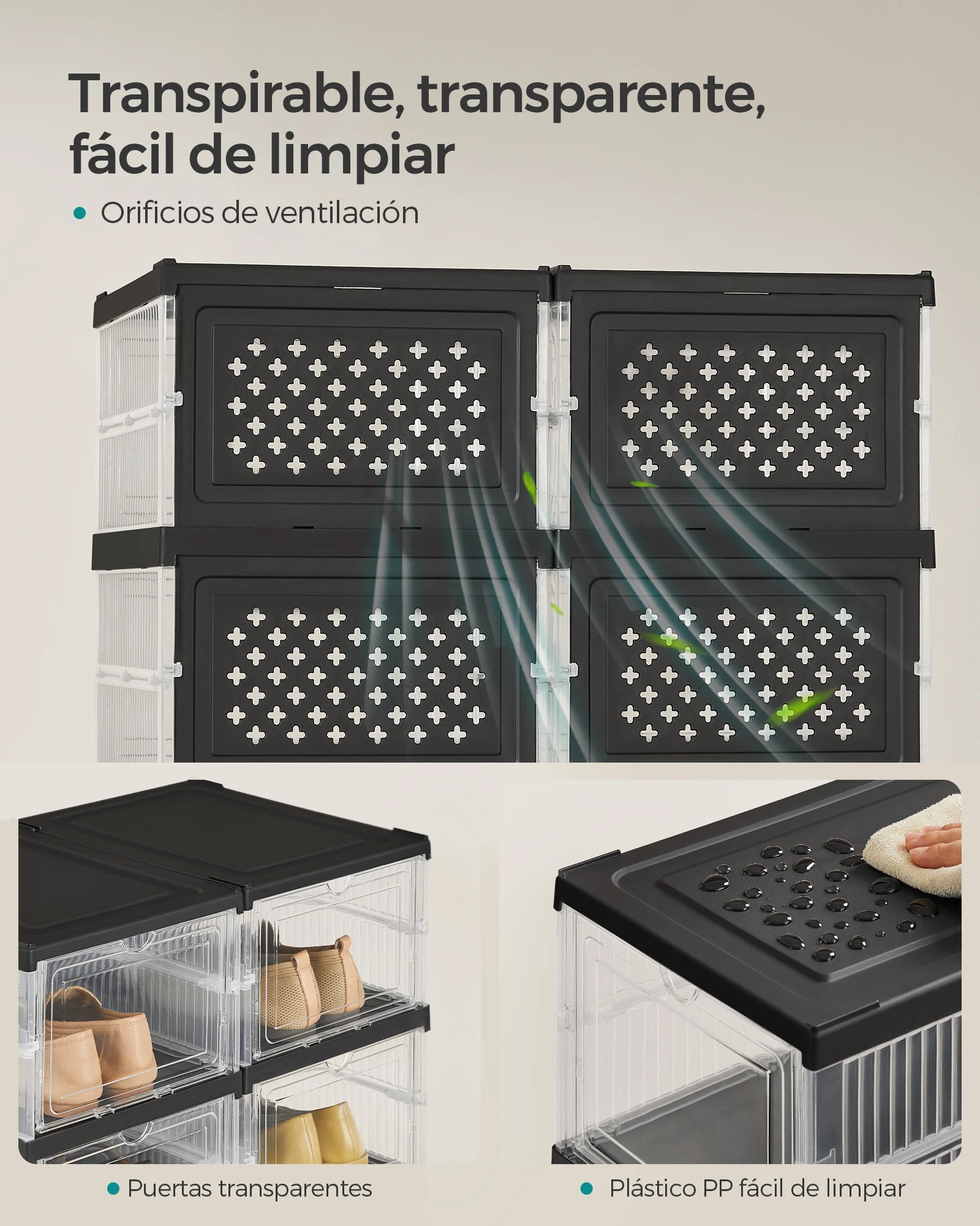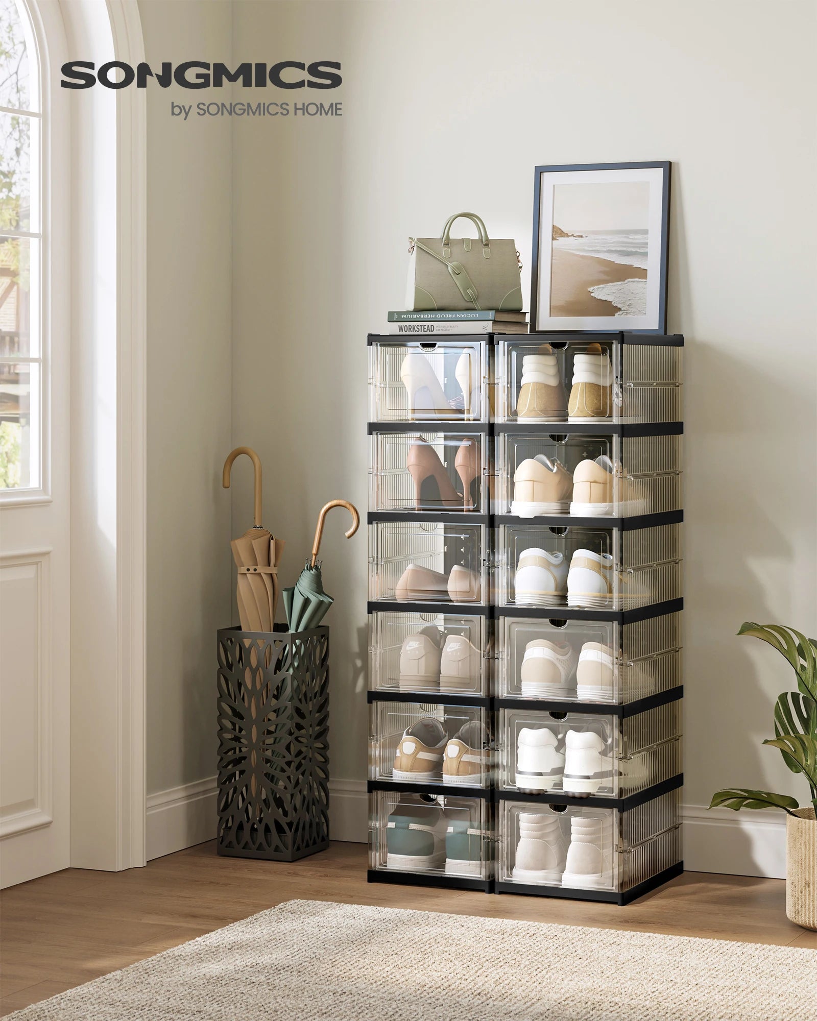 SONGMICS Shoe Boxes, Set of 12 Stackable Shoe Organizers, Set of 2 Foldable and Portable Shoe Racks, up to Size 46