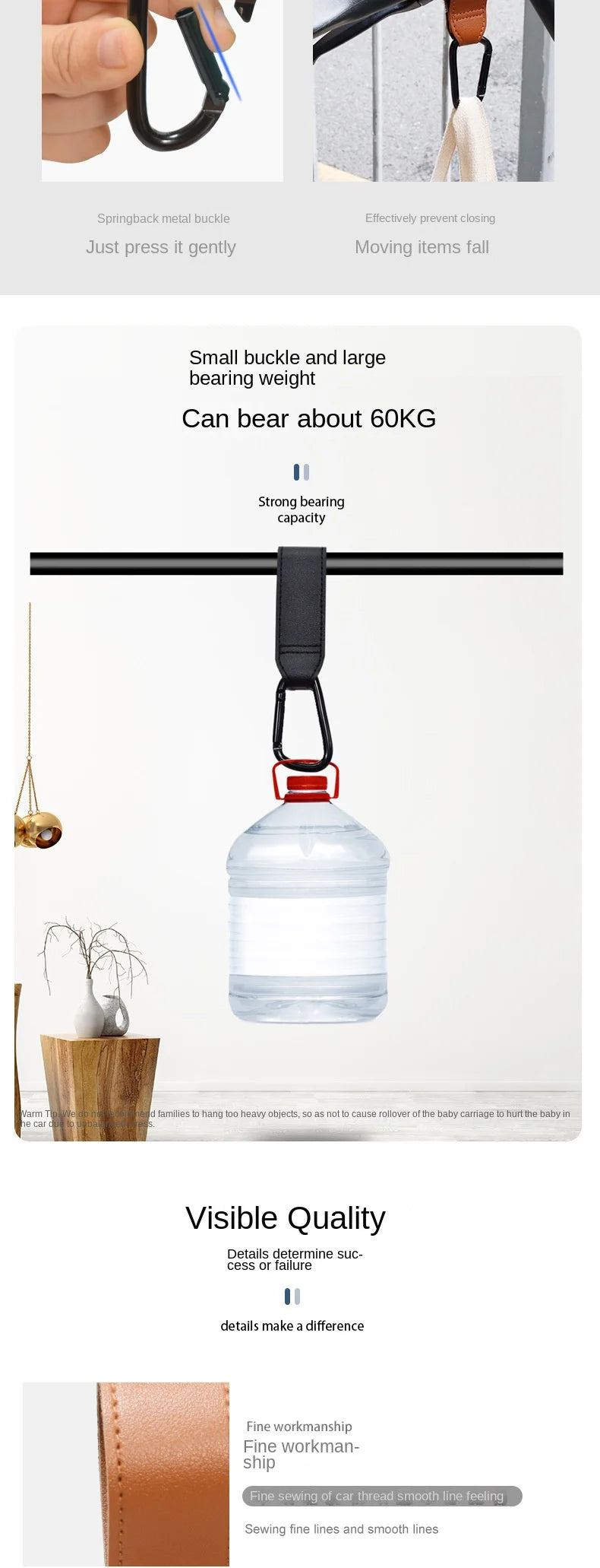 Stroller Hooks Baby Diaper Bag Hook Stroller Organize PU Leather Adjustable Pram Multi-function Hook Strong Bearing High Quality