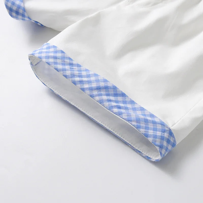 Summer Baby Boys Birthday Clothes Set Children British Style Blue Plaid Shirt with Pants Infants Top Shorts and Bow Kids Outfits