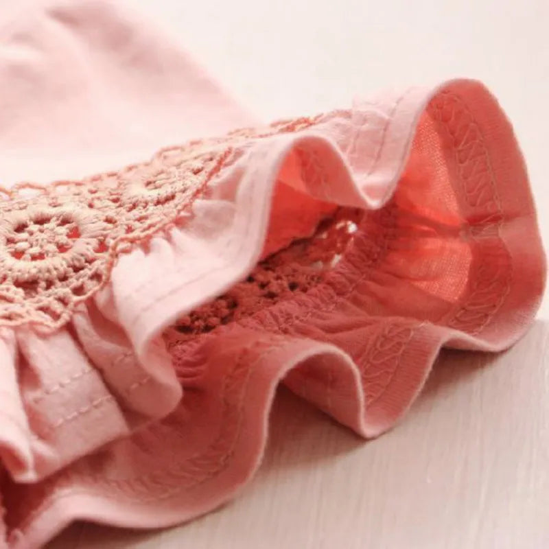 Summer Infant T-Shirts Lace Toddler Tee Children Outfits Solid Color Kids Tops Clothes Cotton Baby Shirts Clothing for Girl 1-8Y