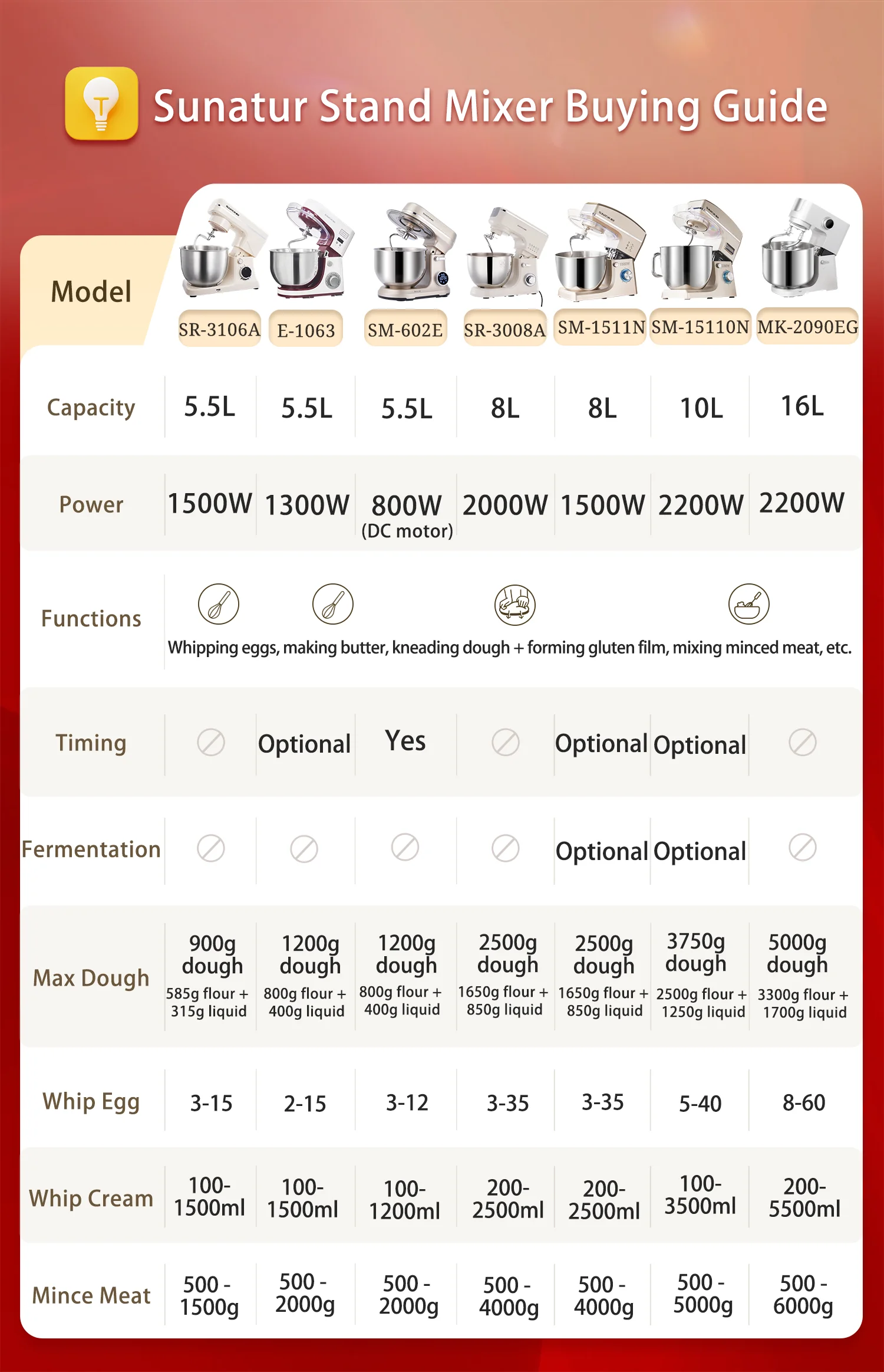 SUNATUR Electric Kitchen Blender Machine: Stand Mixer with Planetary Beater, Supports Dough Mixing,Processor for Home Appliances