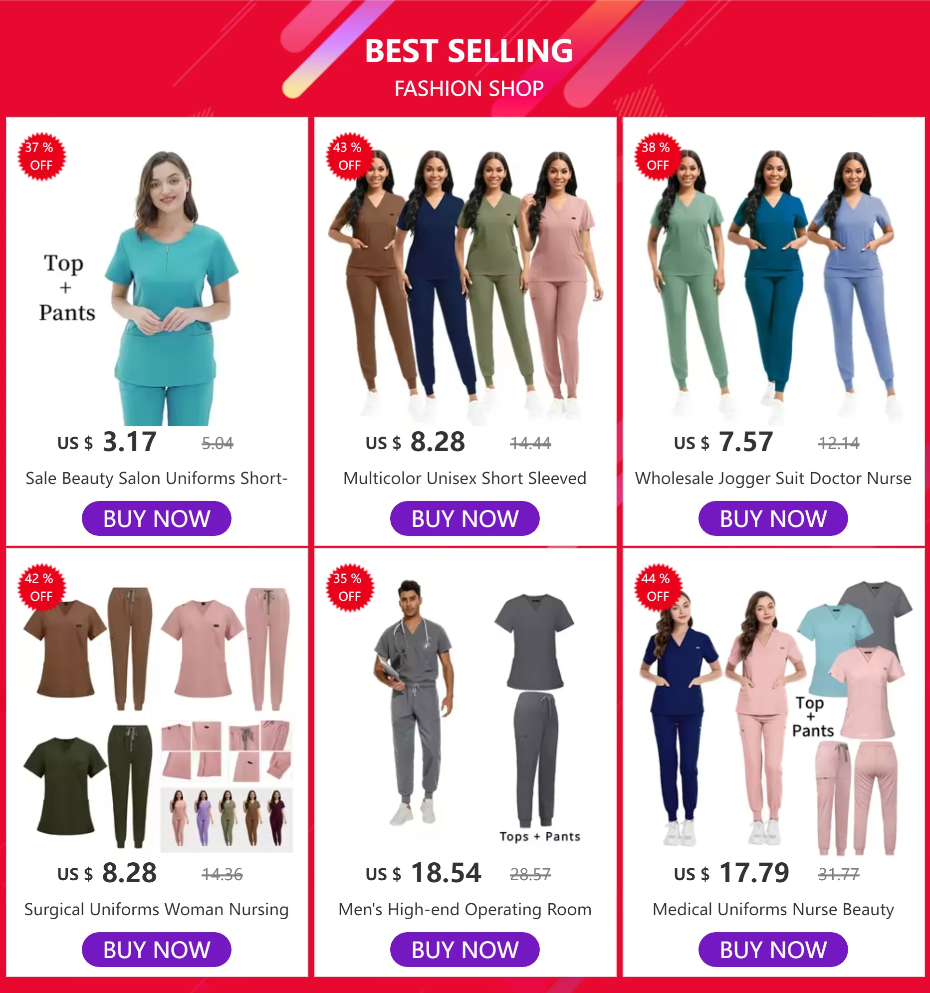 Surgical Scrubs Unisex - Quick-Dry Dental Clinic & ER Workwear Split Set W/Short Sleeve & Anti-Microbial 6 Pockets