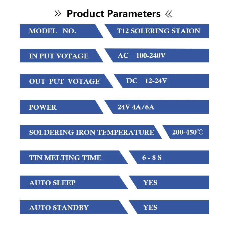 The stable working voltage of the welding station is 24 V. It must be powered by a 24 V DC power supply with an output power of 72 W or more.