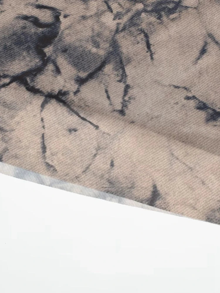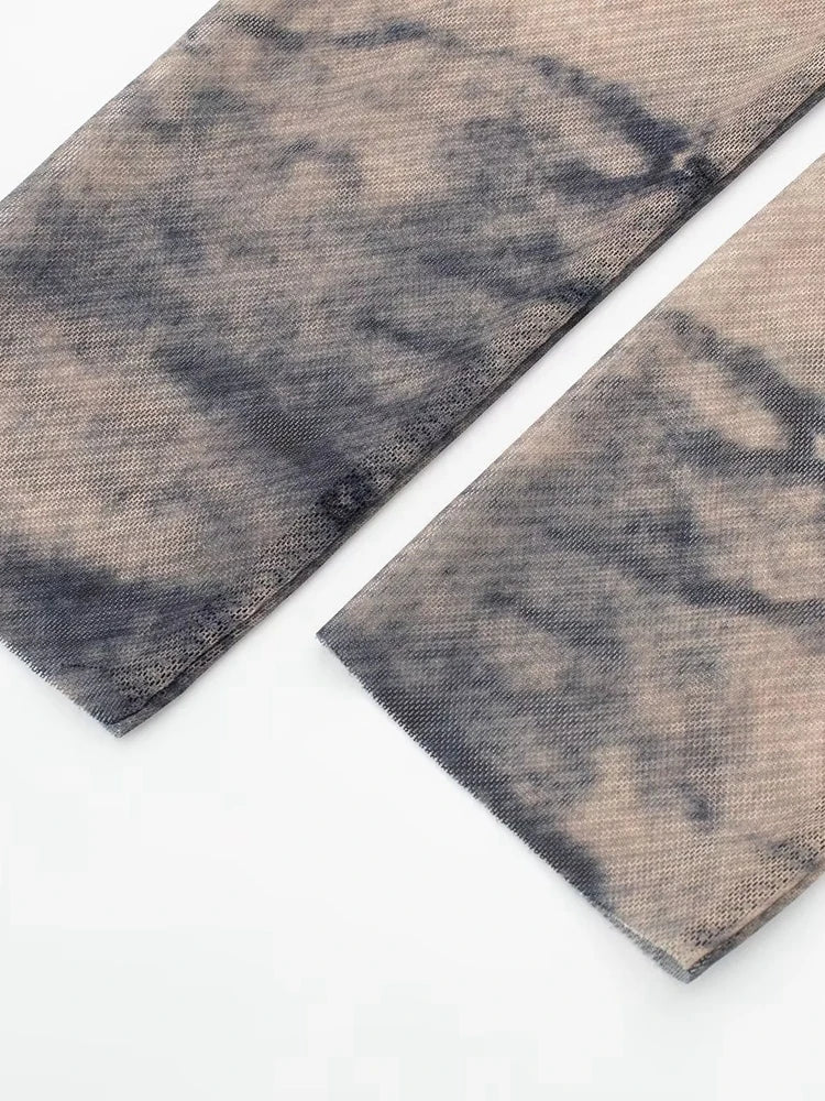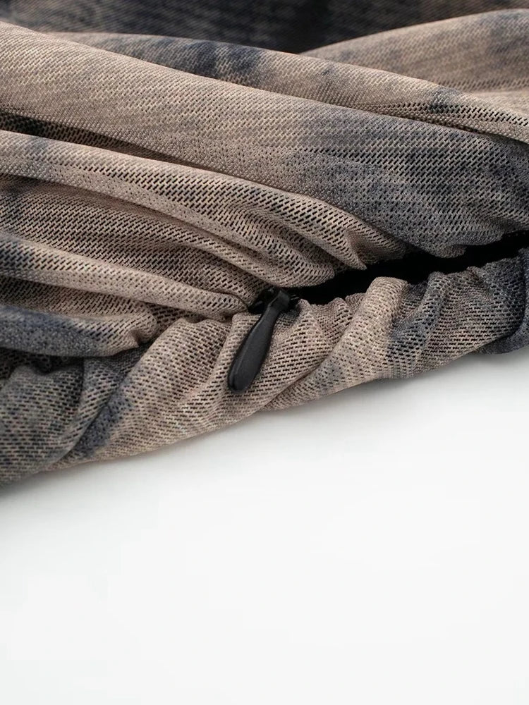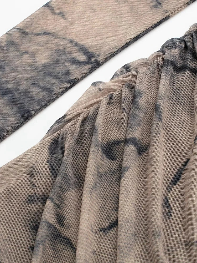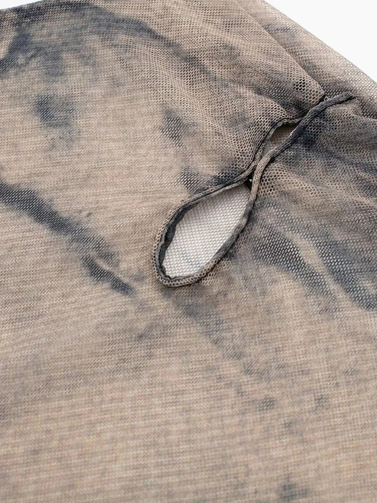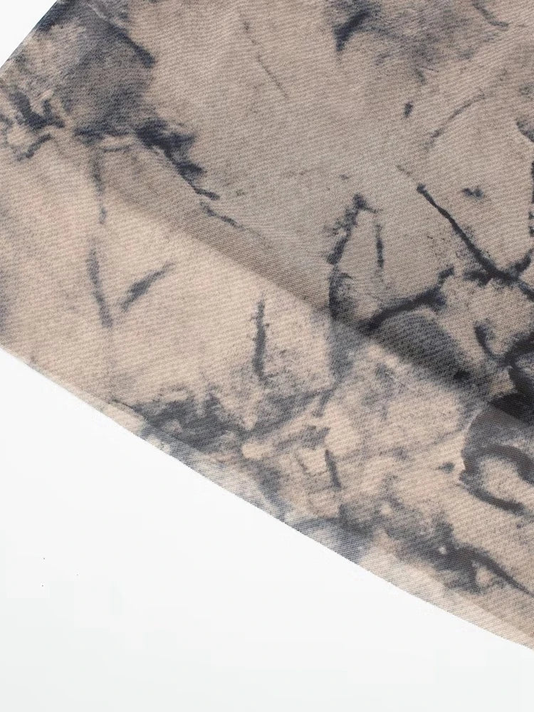Tangada 2024 Women Print Pleated Mesh Dress Long Sleeve Sexy Famle Stand Collar Maxi Dresses 3H406