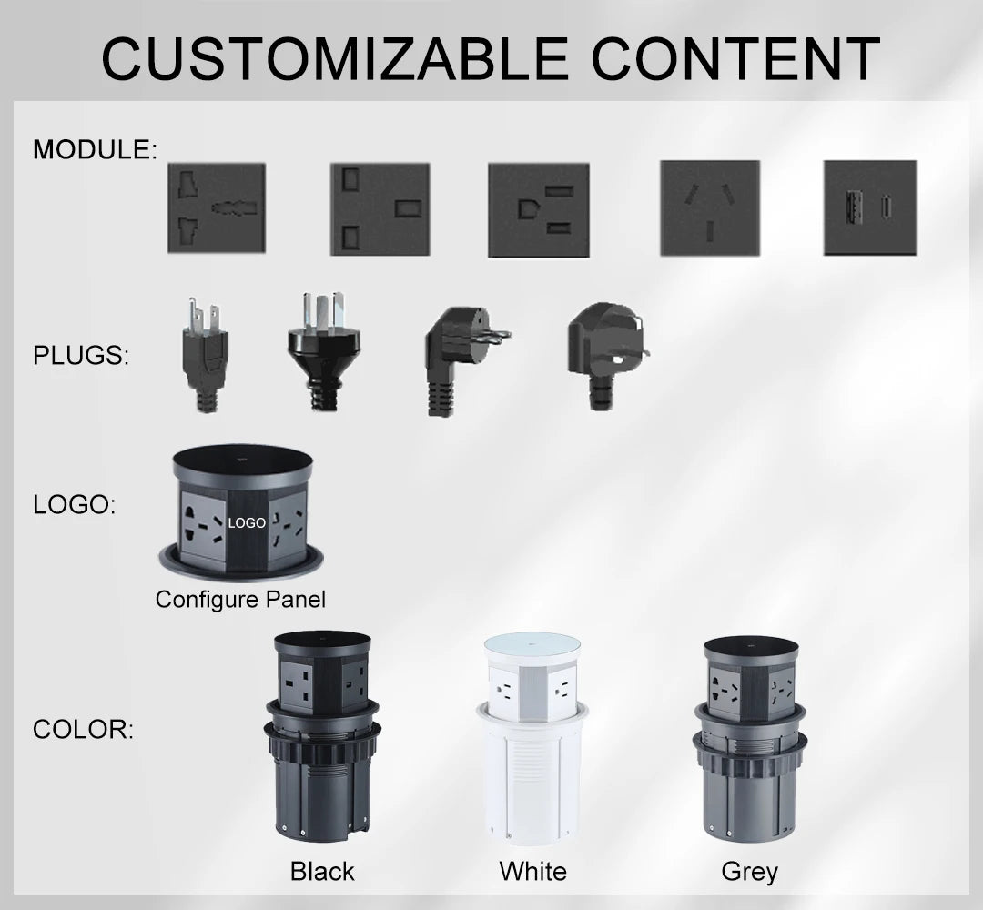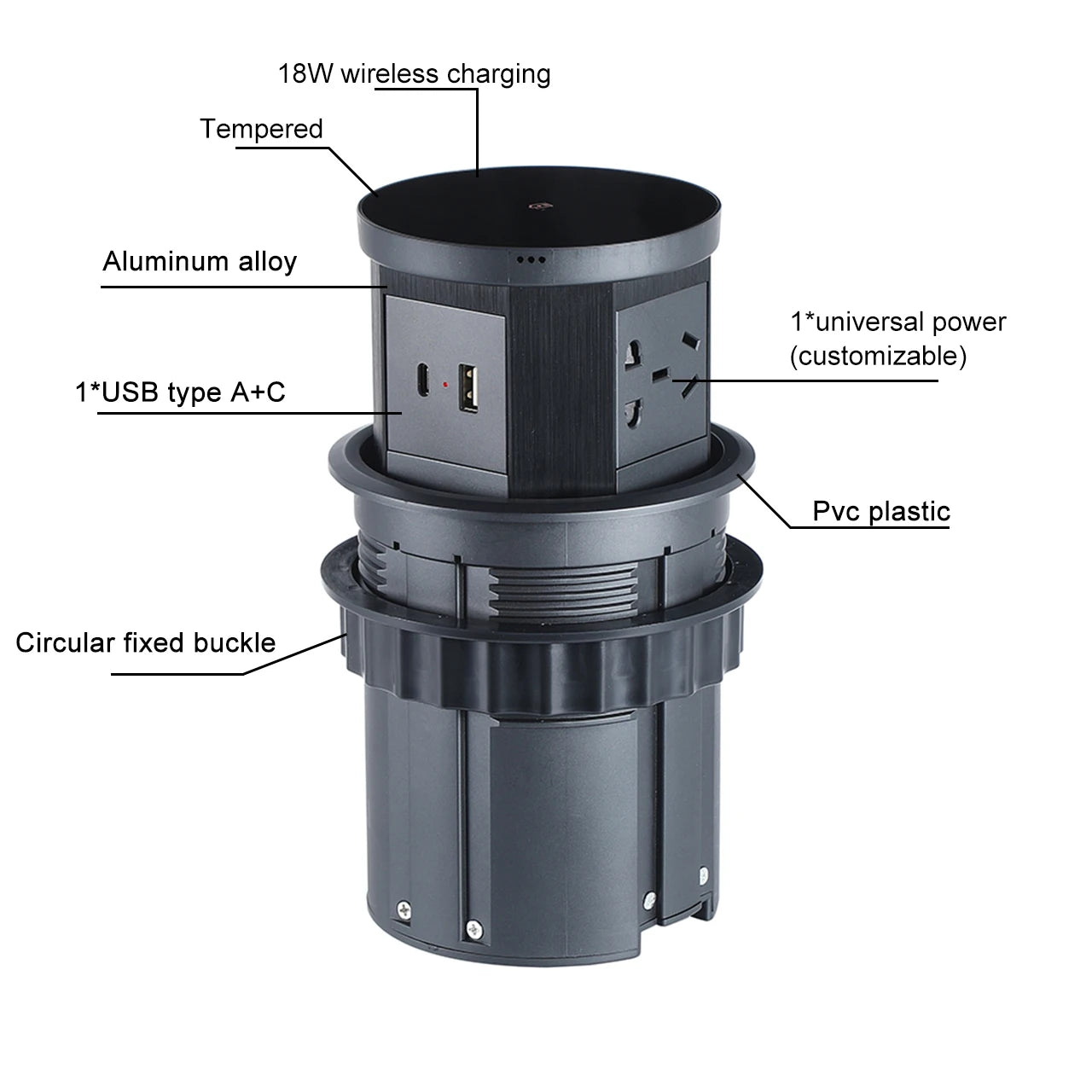 Tempered Glass Top Kitchen Counter Smart Pop Up Socket Push Button 4 Sides Electrical Socket with Usb Type-c Charger