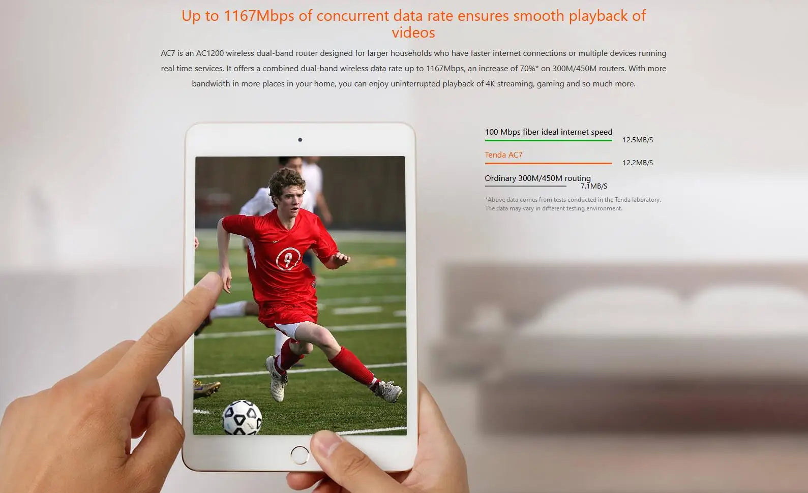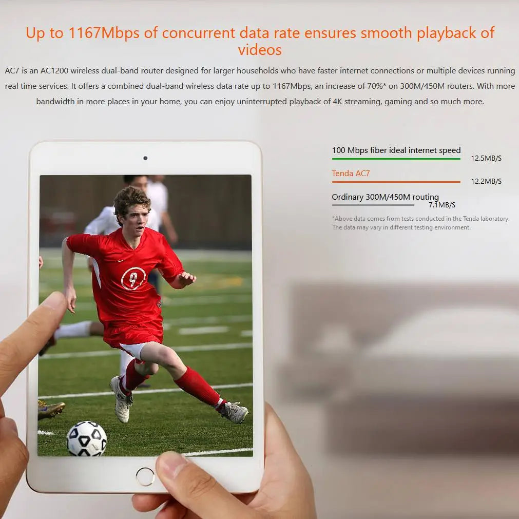 Tenda AC7 Dual Band Wireless AC1200 Router Wifi Range Repeater with 5*6dBi High Gain Antennas Wider Coverage Wi-Fi Extender