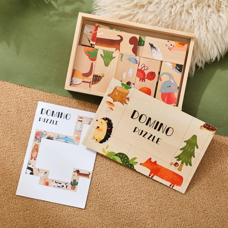 The Baby Montessori Domino Puzzle Toy Features Cartoon Patterned Dominoes With Smooth Edges That Are Super Fun For Babies