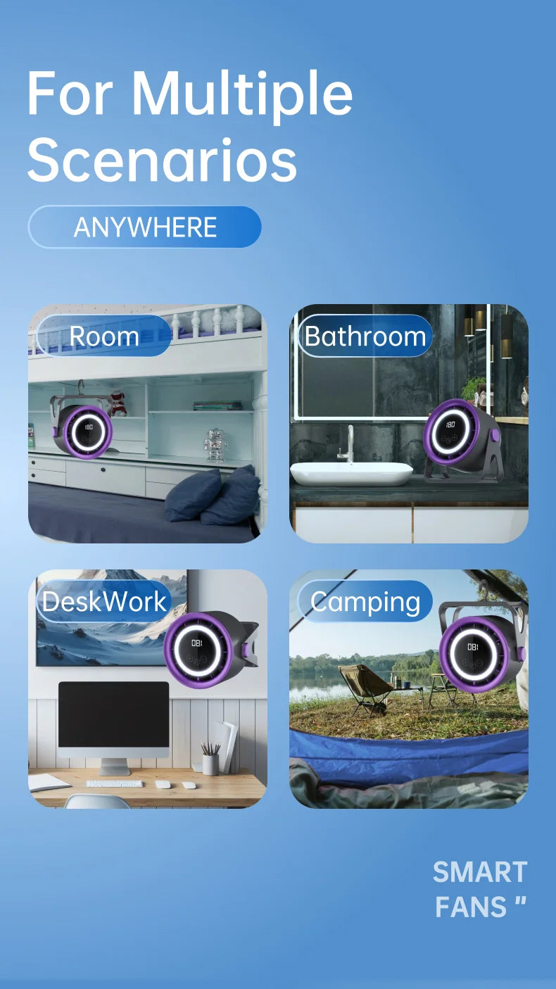 TINSOL 2500mAH Portable Electric Fan with Ambient Light Turbo Mute Electric Fan Desktop Wall Mount Ceiling Air Cooler