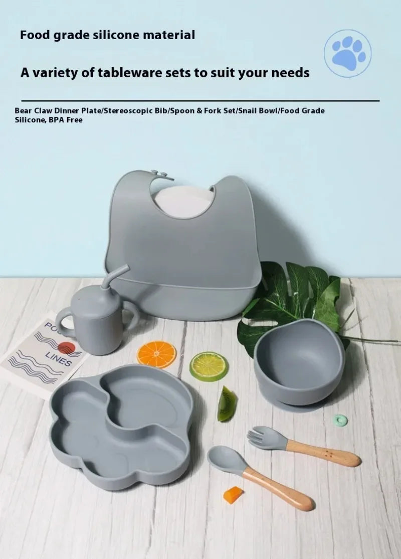 Toddler Baby Food Bowl Children's Tableware Babys Silicone Dishes Set Toddler Training Tableware Bowls Baby Feeding Set Silicone