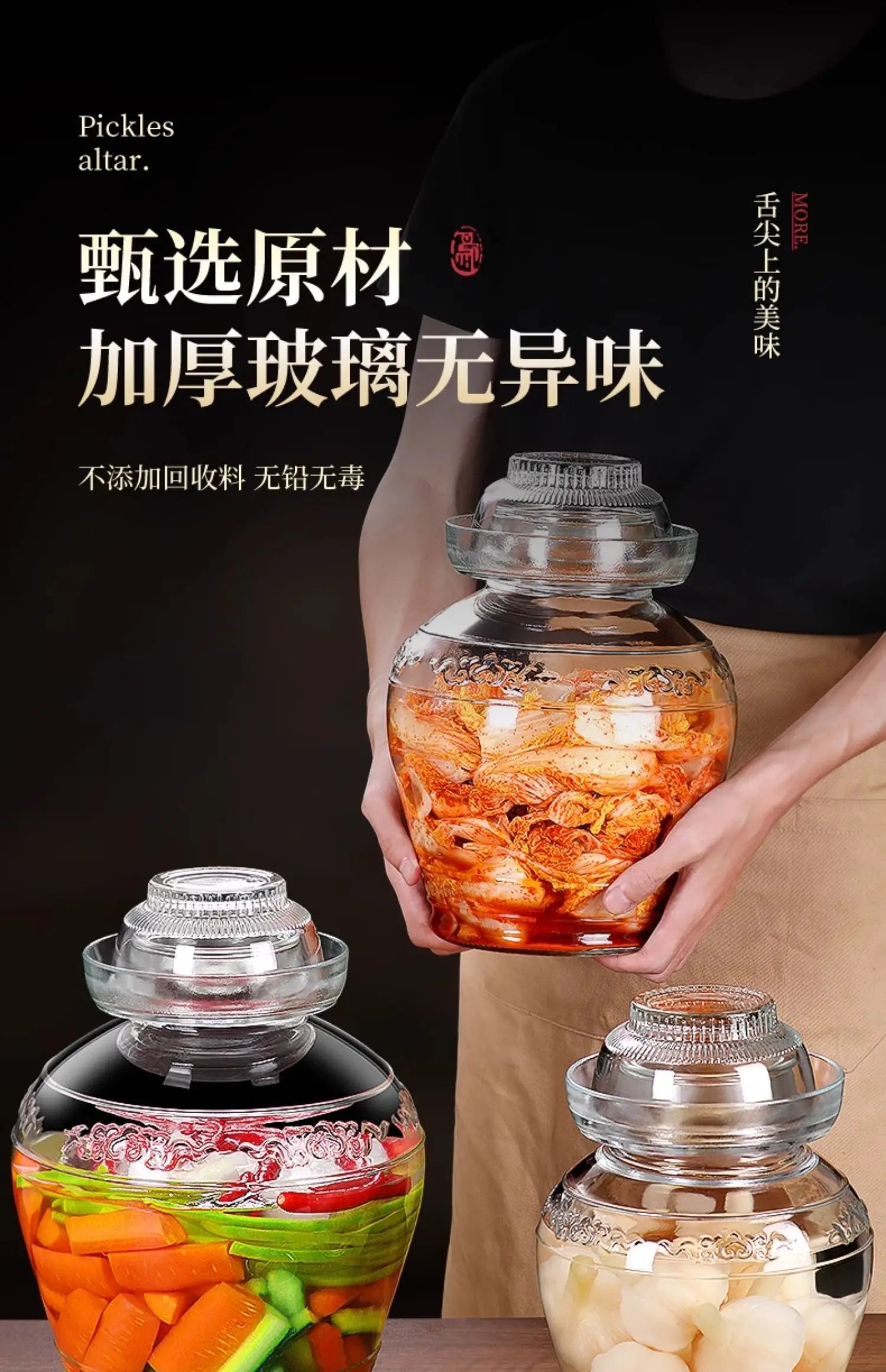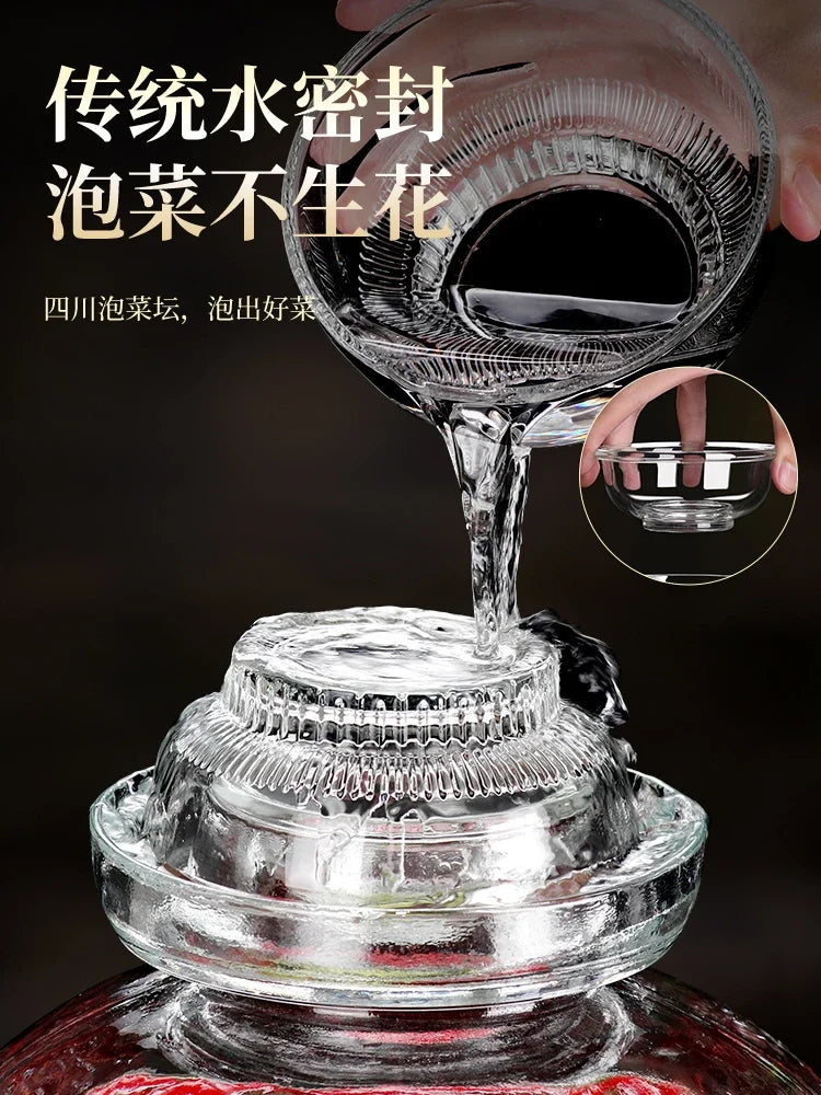 Traditional Fermenting Kit Crock with Water Seal Airlock Lid, for Pickles Kimchi Sauerkraut,Glass Jar with Lid Fermentation Jar