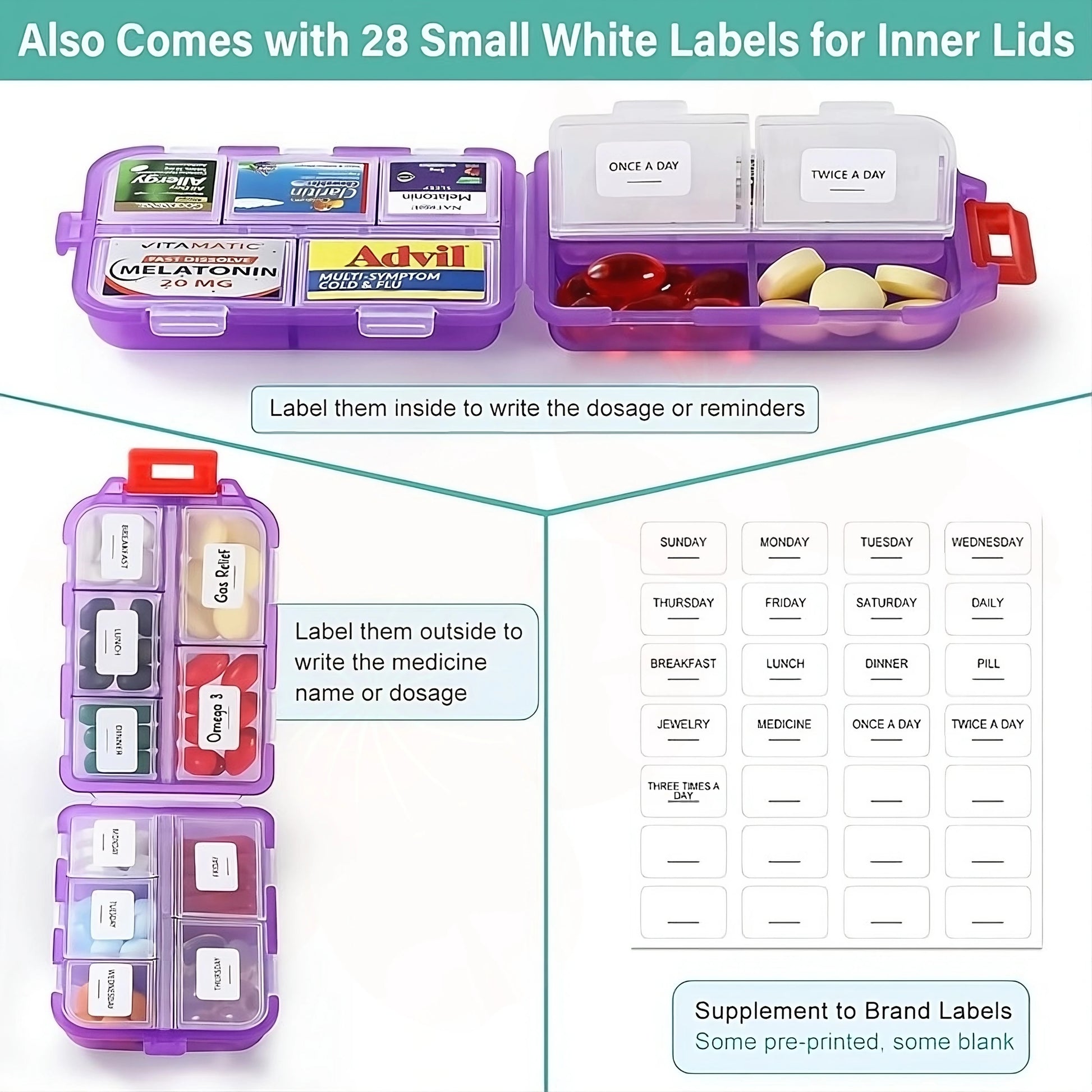 Travel Pill Organizer Box Brand Labels 10 Compartment Small Pill Case Medicine Kit Portable Pocket Purse Pharmacy