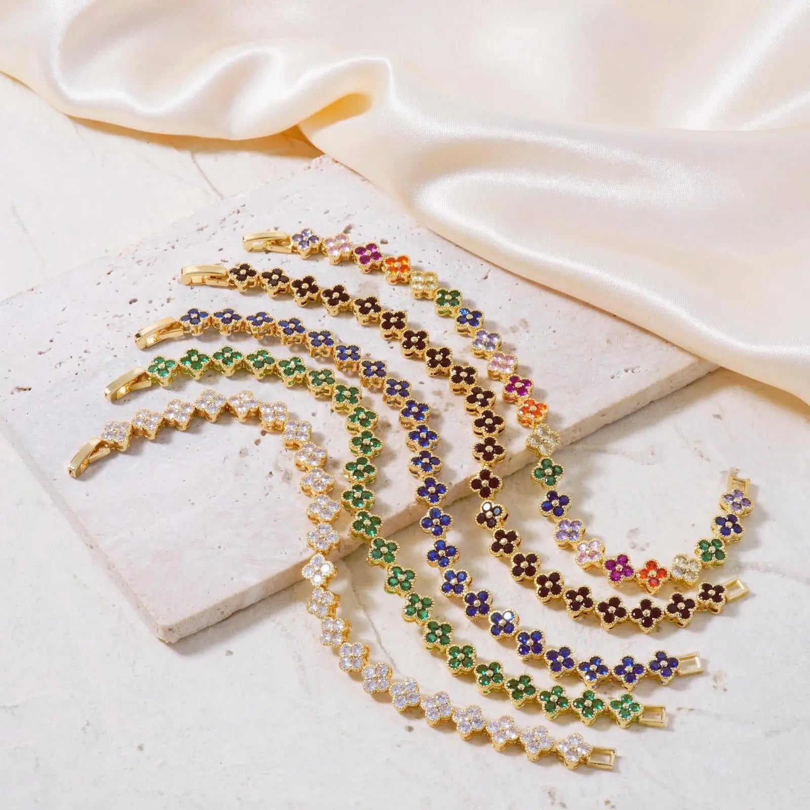 UILZ Delicate Lucky Clover Women Bracelet High Quality Stainless Steel Morandi Colors Shining Zircon Inlaid Charm Jewelry Gift