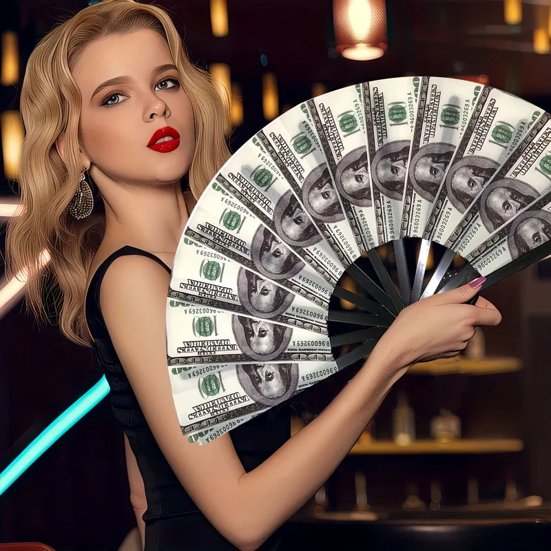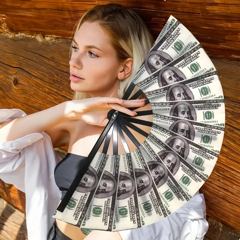 Unique Folding Fan with Dollar Print, Highly Personalised Handheld Fan. Suitable for Parties, Weddings, Club Events