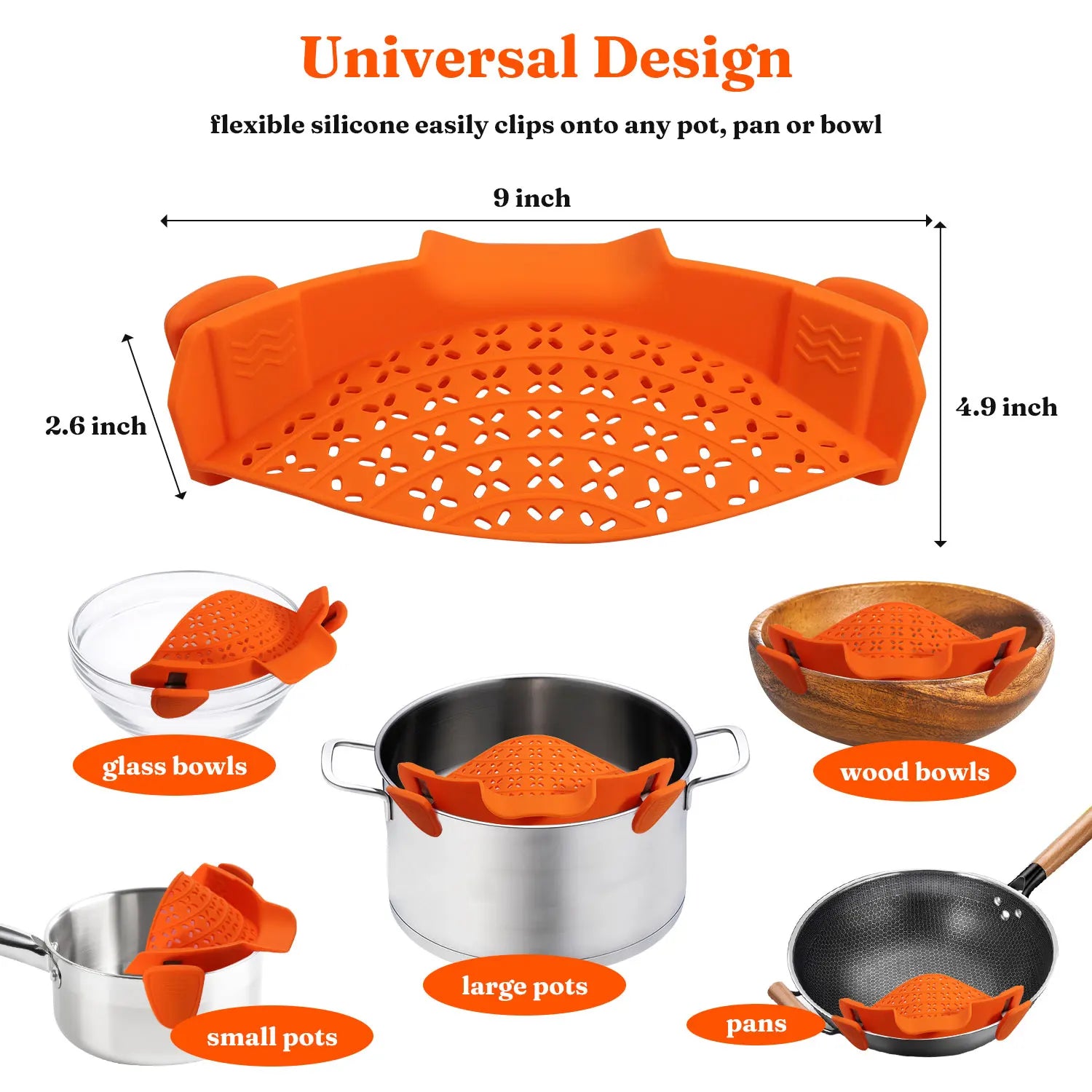 Universal Silicone Clip on Pan Pot Strainer Anti Spill Pasta Pot Strainer Food Grade Fruit Colander for Pasta Fruit Vegetable