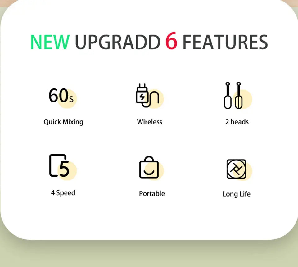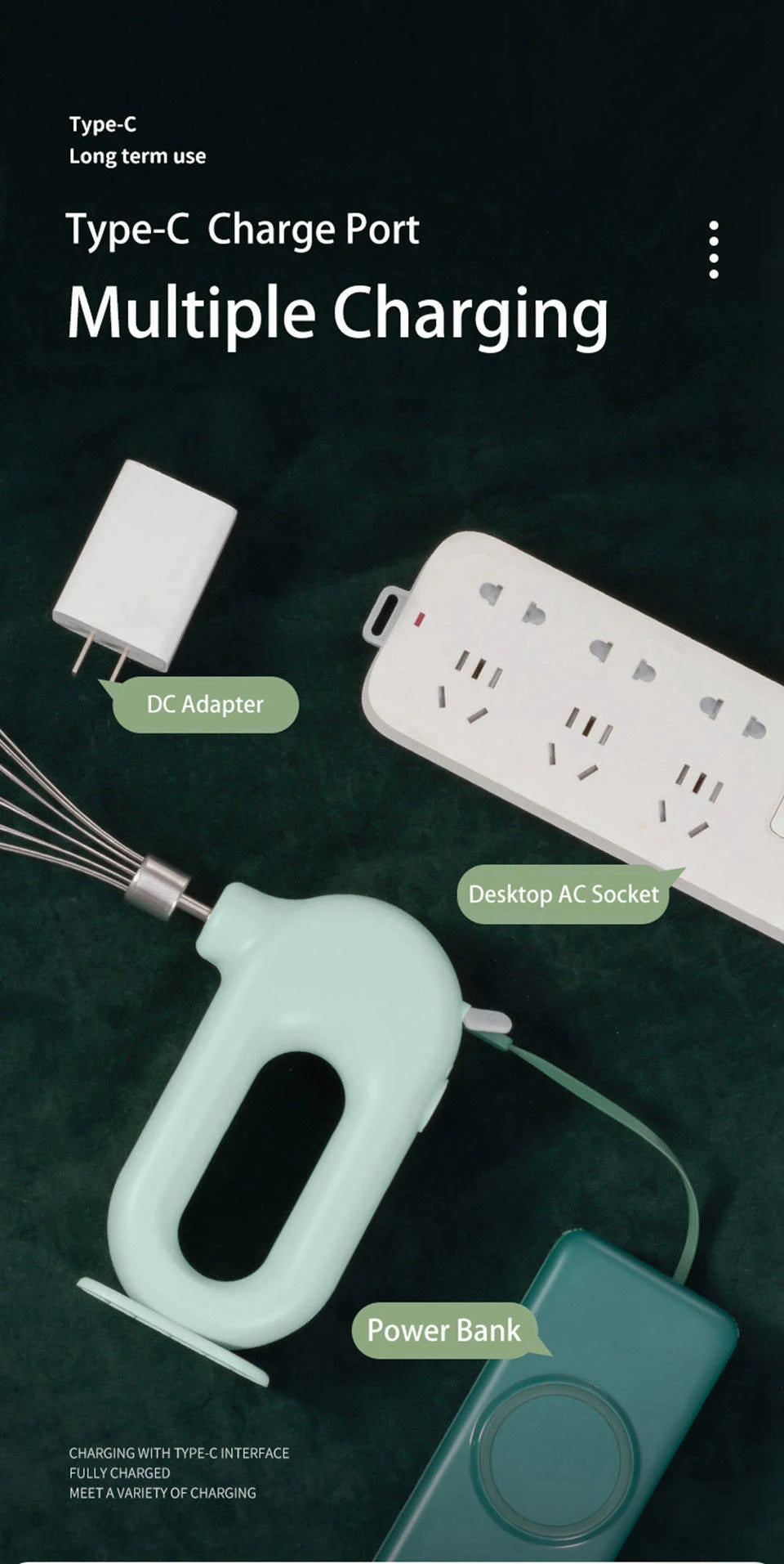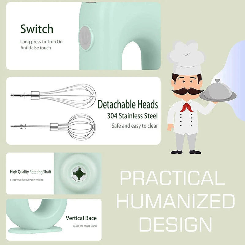 USB Electric Blender Wireless Portable Mixers with 2 Mixing Head Food Mixer Handheld Rechargeable Whisks Dough Stirrer Eggbeater