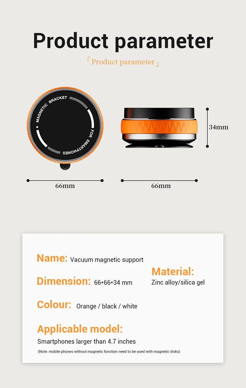 Vacuum Suction Magnetic Car Mount Strong Suction Stand Phone Holder Foldable Design 360° Rotation Adjustable Car Phone Bracket