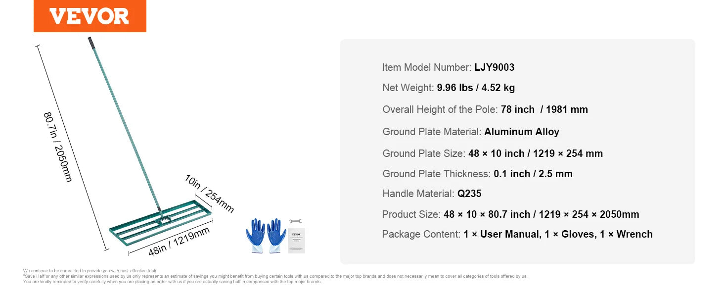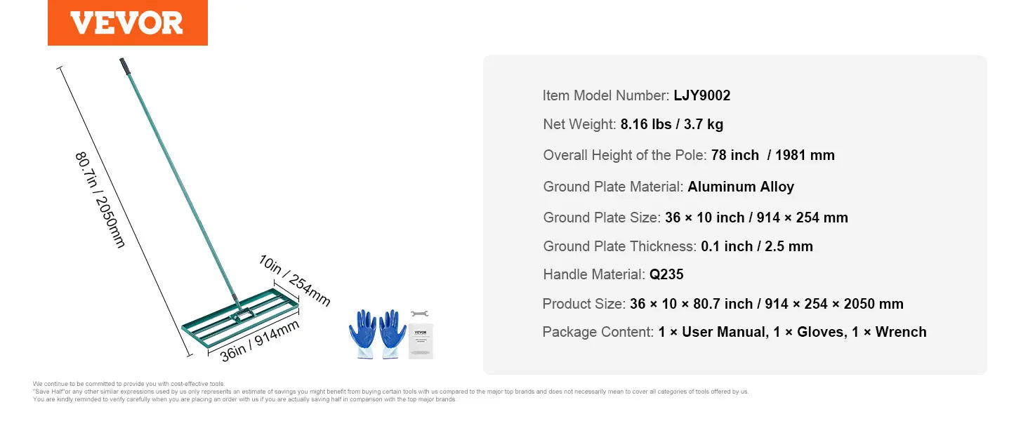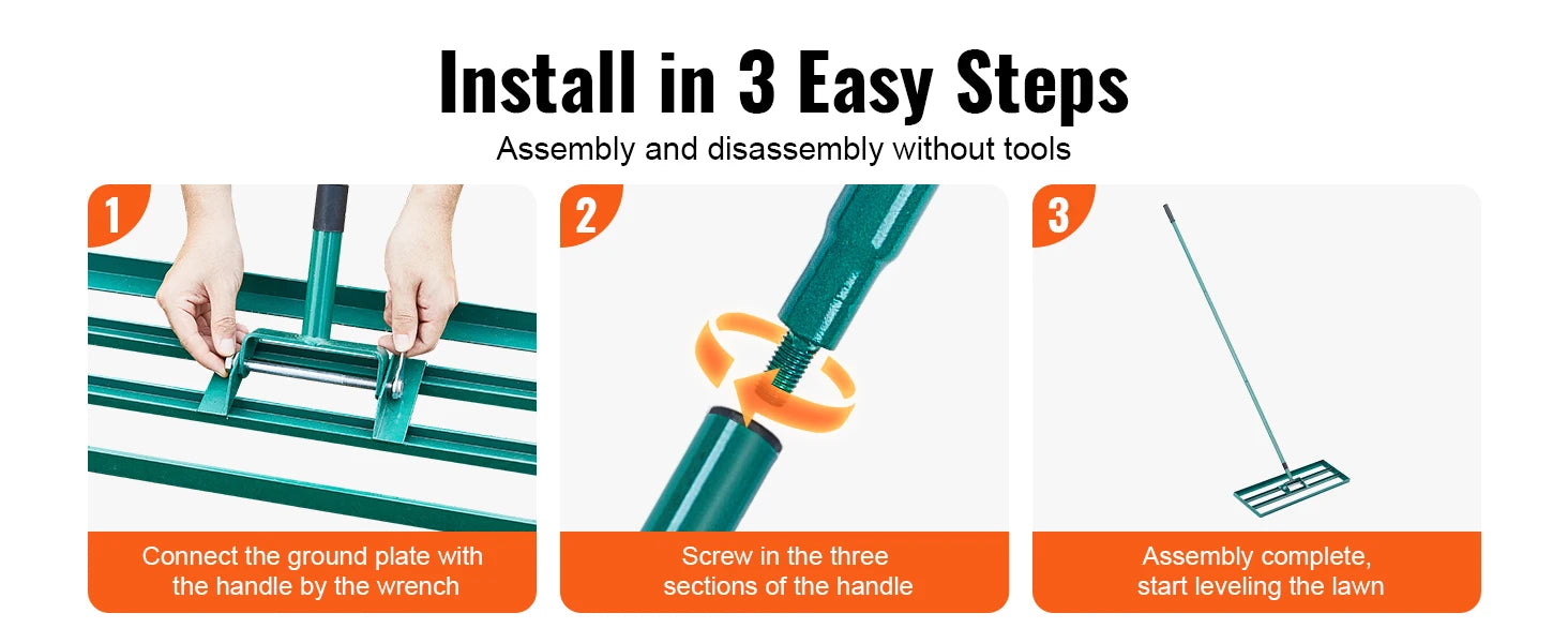 VEVOR Lawn Leveling Rake Level Lawn Tool, Heavy-duty Lawn Leveler with Extended Handle Yard Leveling Rake Suit