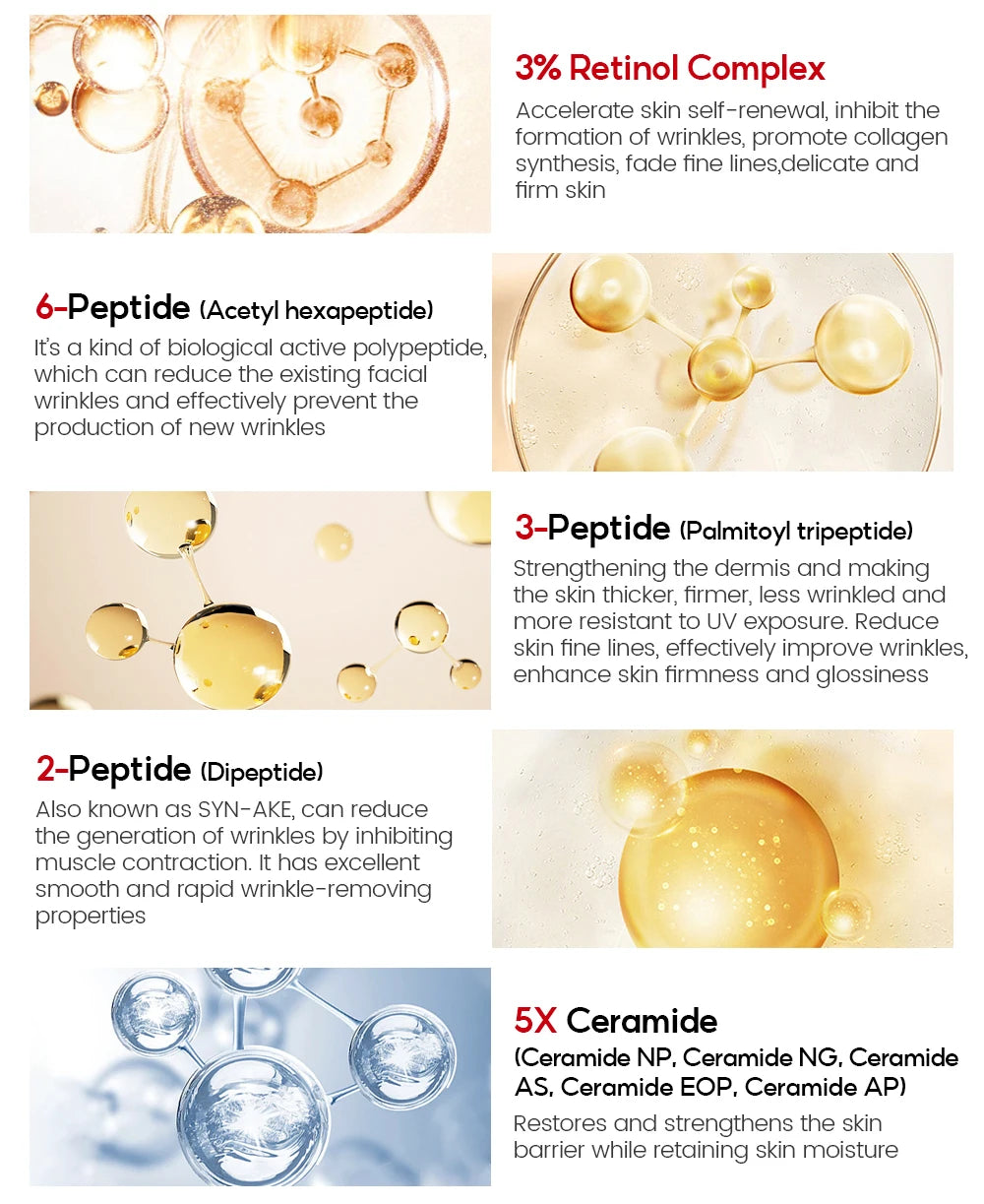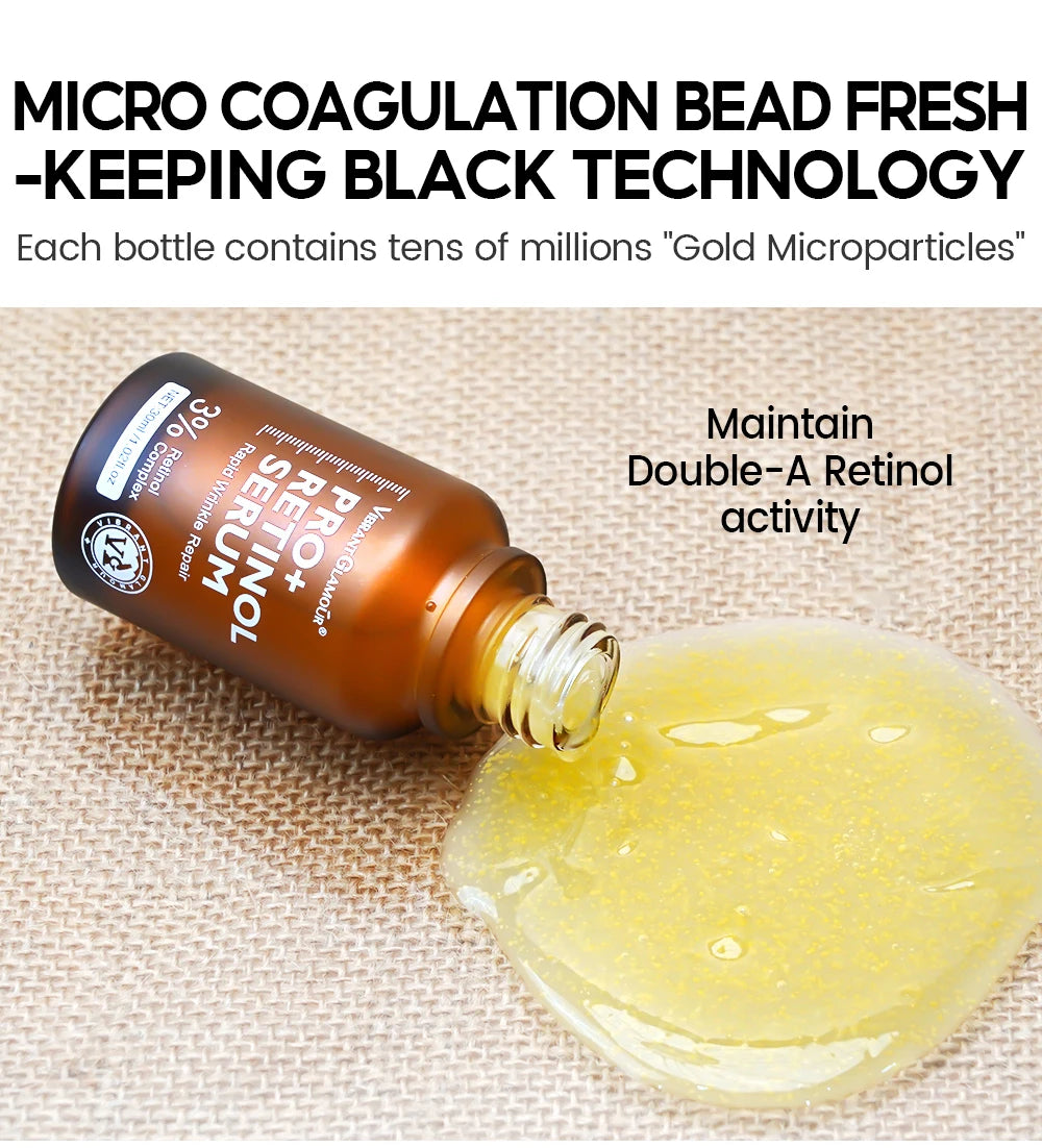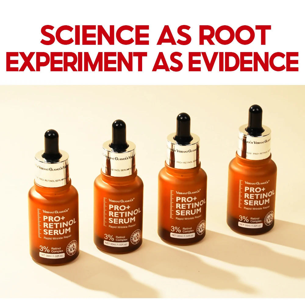 VIBRANT GLAMOUR PRO+ Retinol Face Serum Upgrade 3% Retinol+3X Peptide+5X Ceramide Repair Skin Firming Collagen Anti-Aging