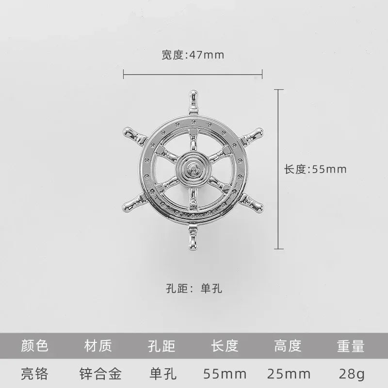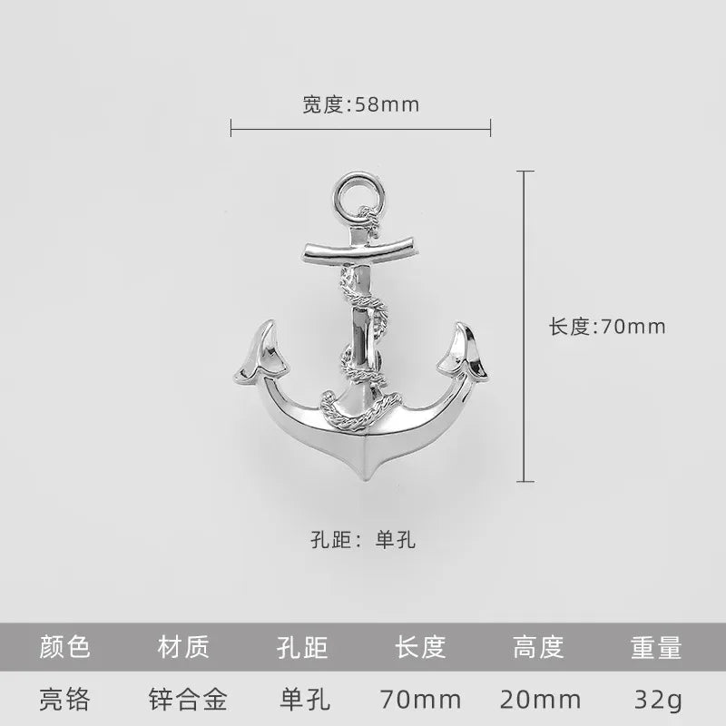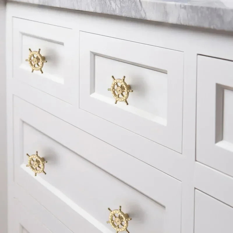 Vintage Anchor Ship Wheel Cabinet Handle - Antique Brass Single Hole Pull for Wardrobe/Cabinet, Nautical Drawer Hardware