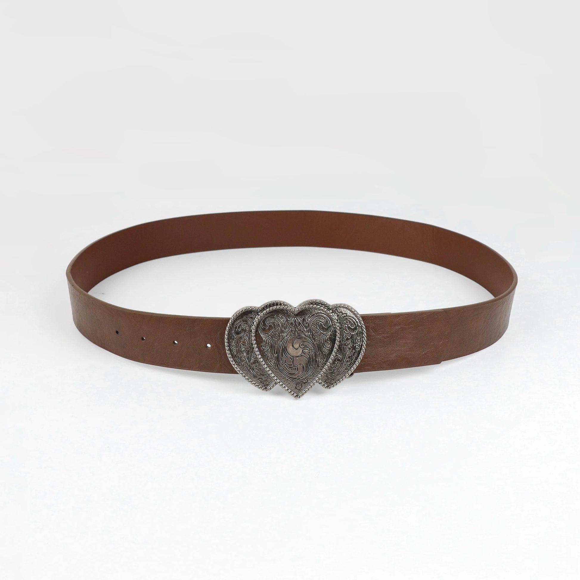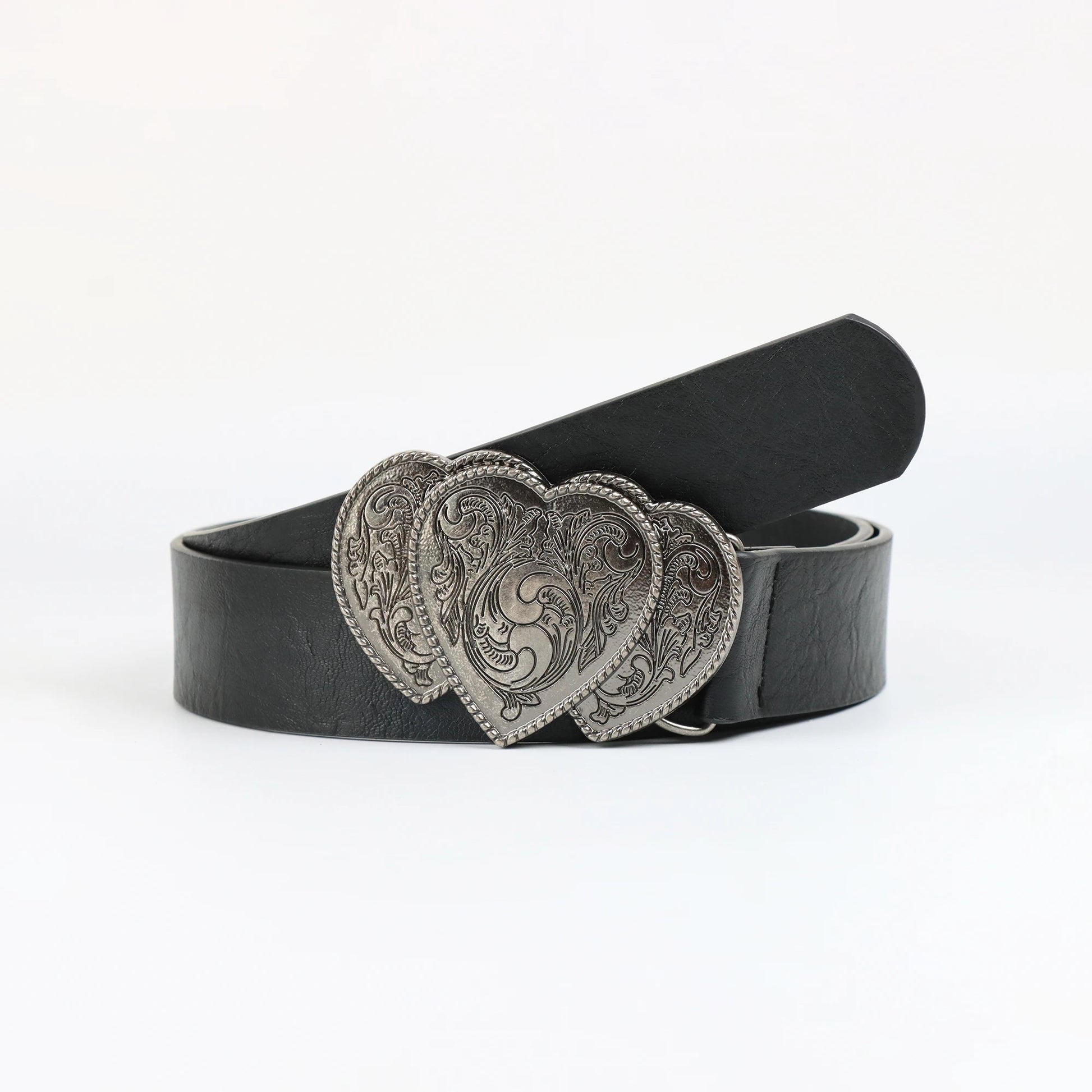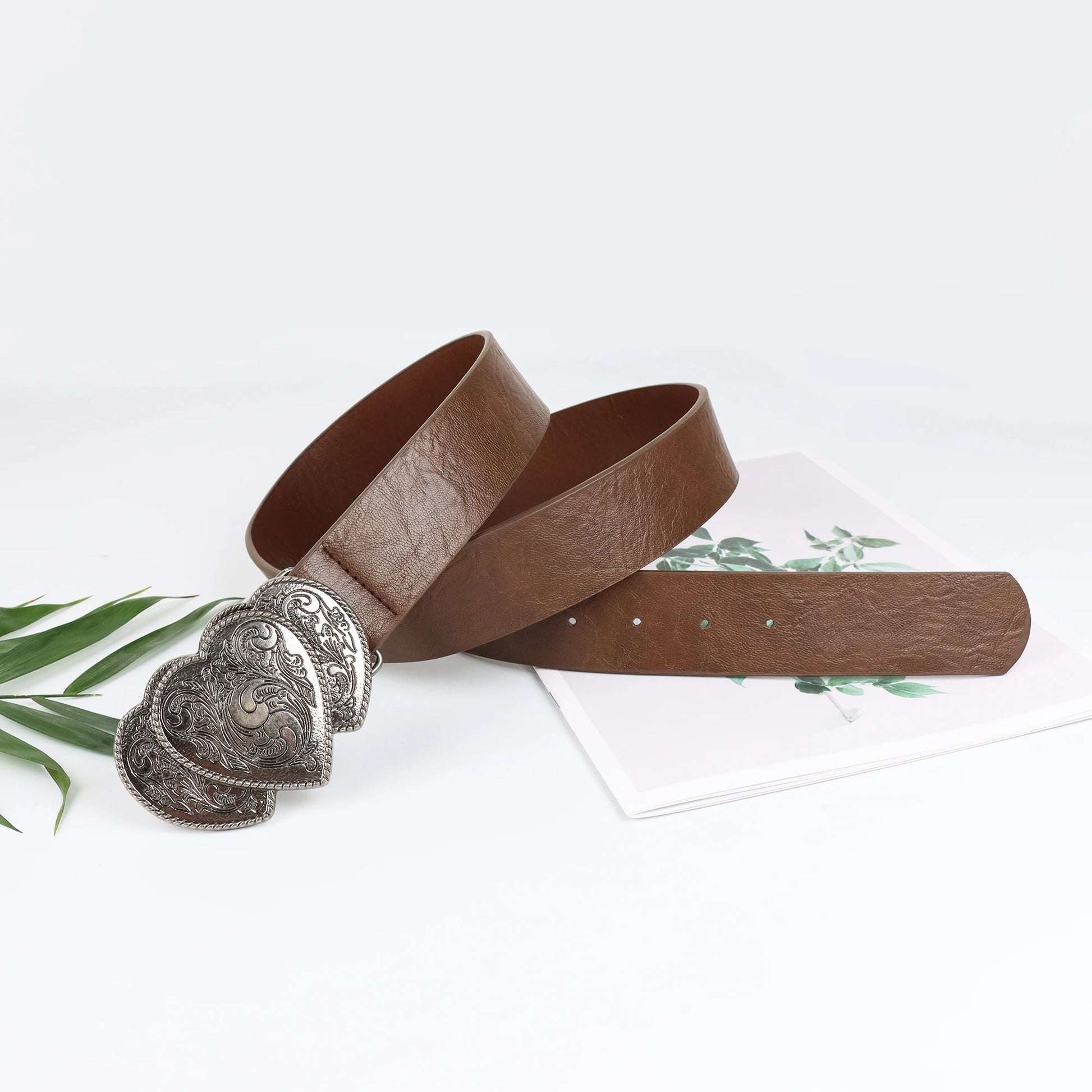 Vintage Heart Leather Belt Love Buckle Retro Embossed Belt Men's Pattern Belt Ethnic Belt Western Jeans Belt Goth
