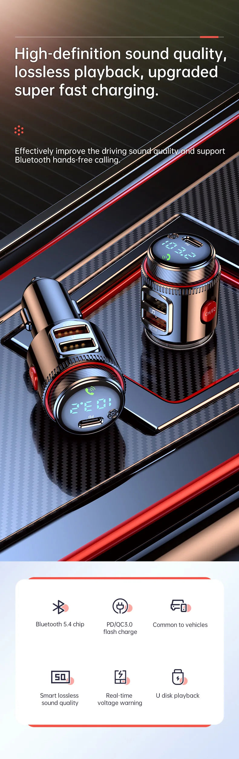 VR Robot PD30W+QC 3.0 Bluetooth 5.4 Car MP3 Player FM Transmitter Wireless Handsfree U Disk Play USB Car Fast Charge Adapter