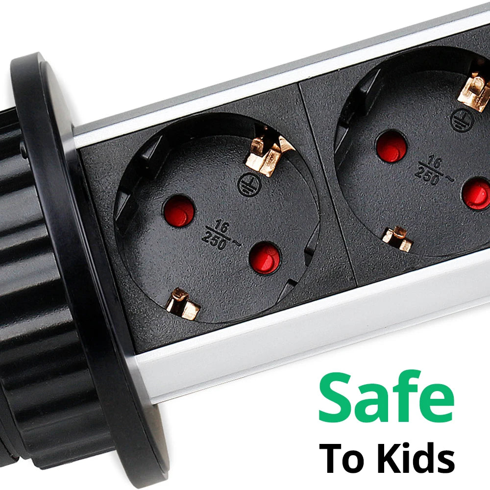 Wallpad Pull Pop Up Desktop Socket 3 Outlets 2.4A USB Ports or No 2M Extension Plug Retractable Aluminum Body For Kitchen Tabel