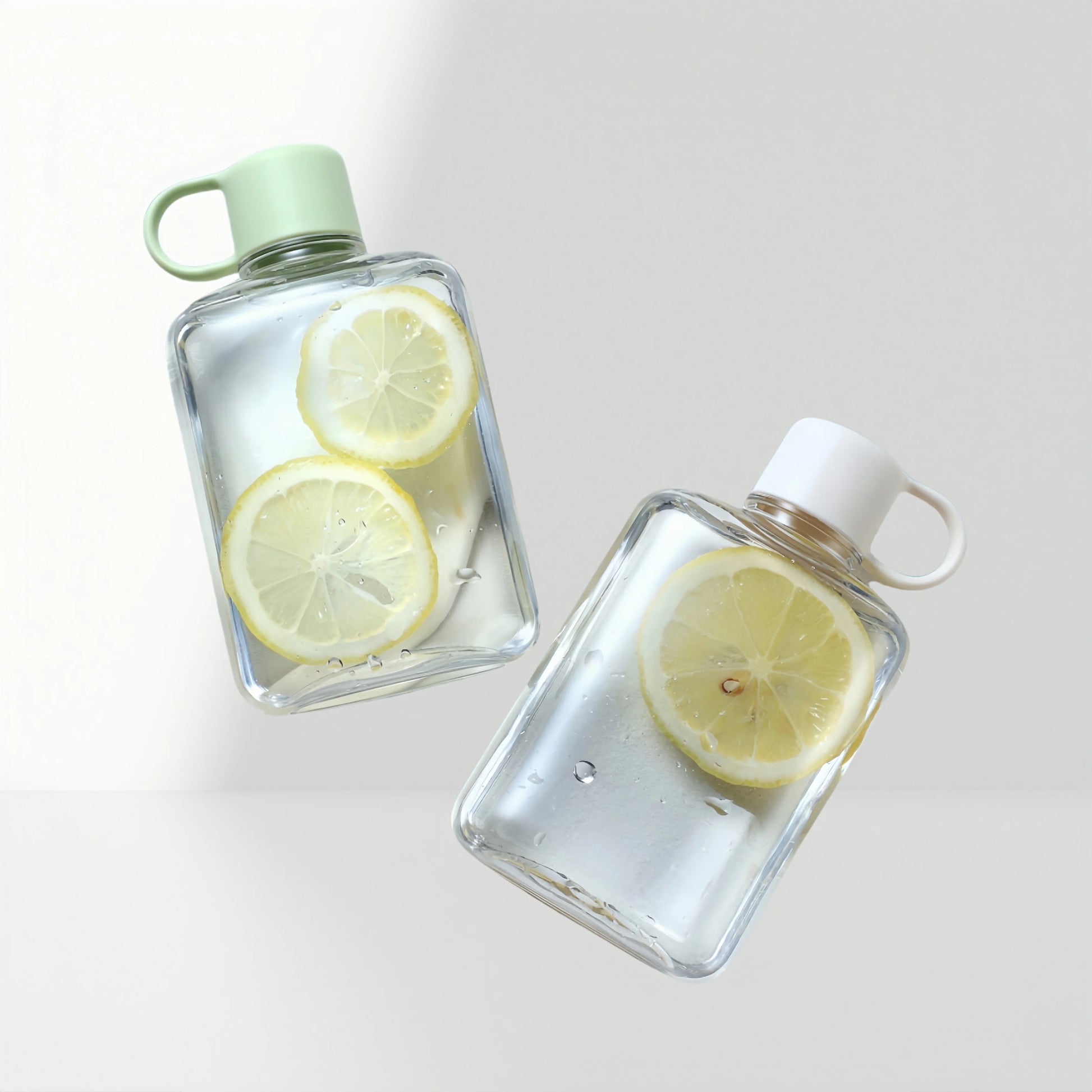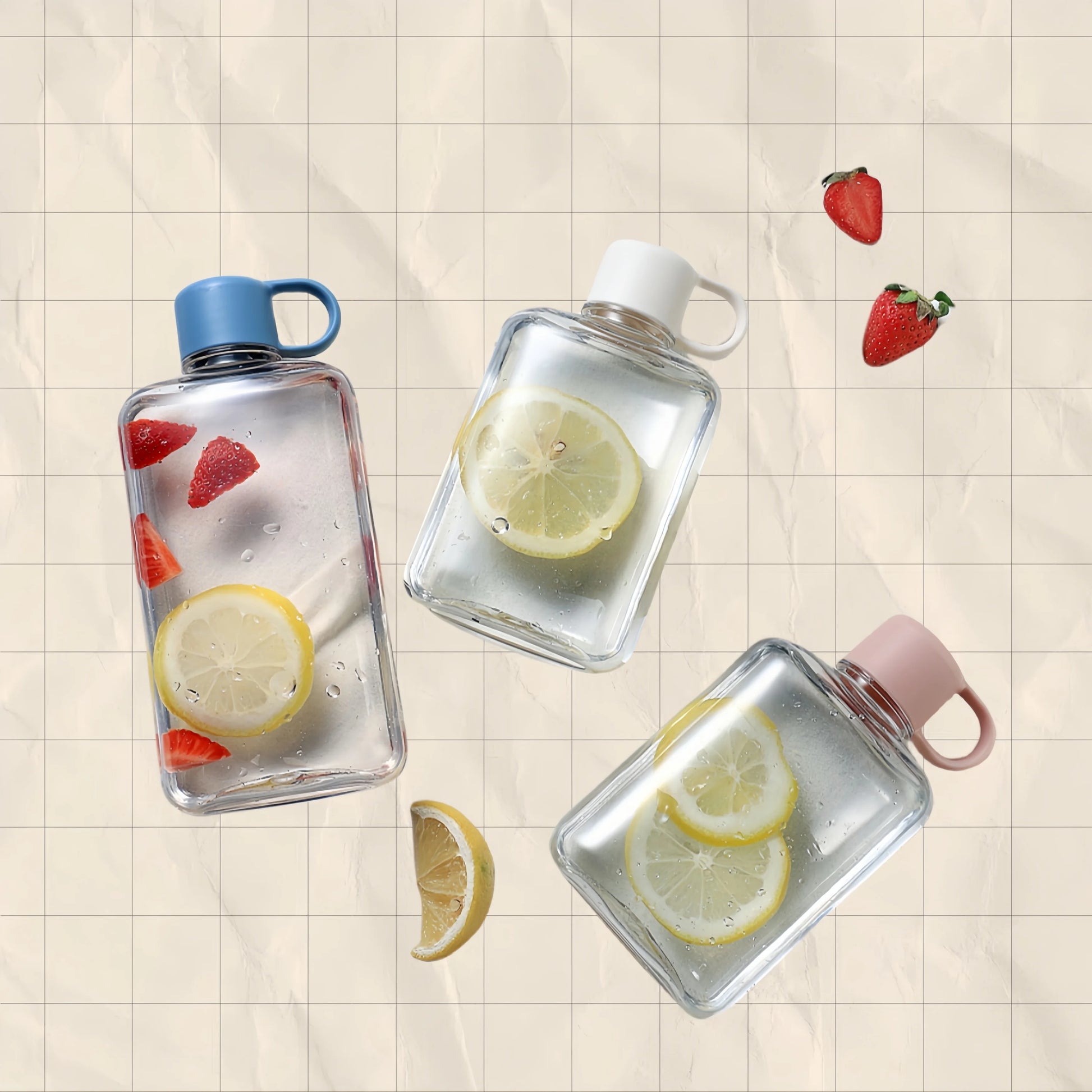Water Botlte Flat Bpa Free Sport Clear Plastic Crystal Drinks Kettle Notebook Milk Juice Transparent Drinkware Birthday Gift